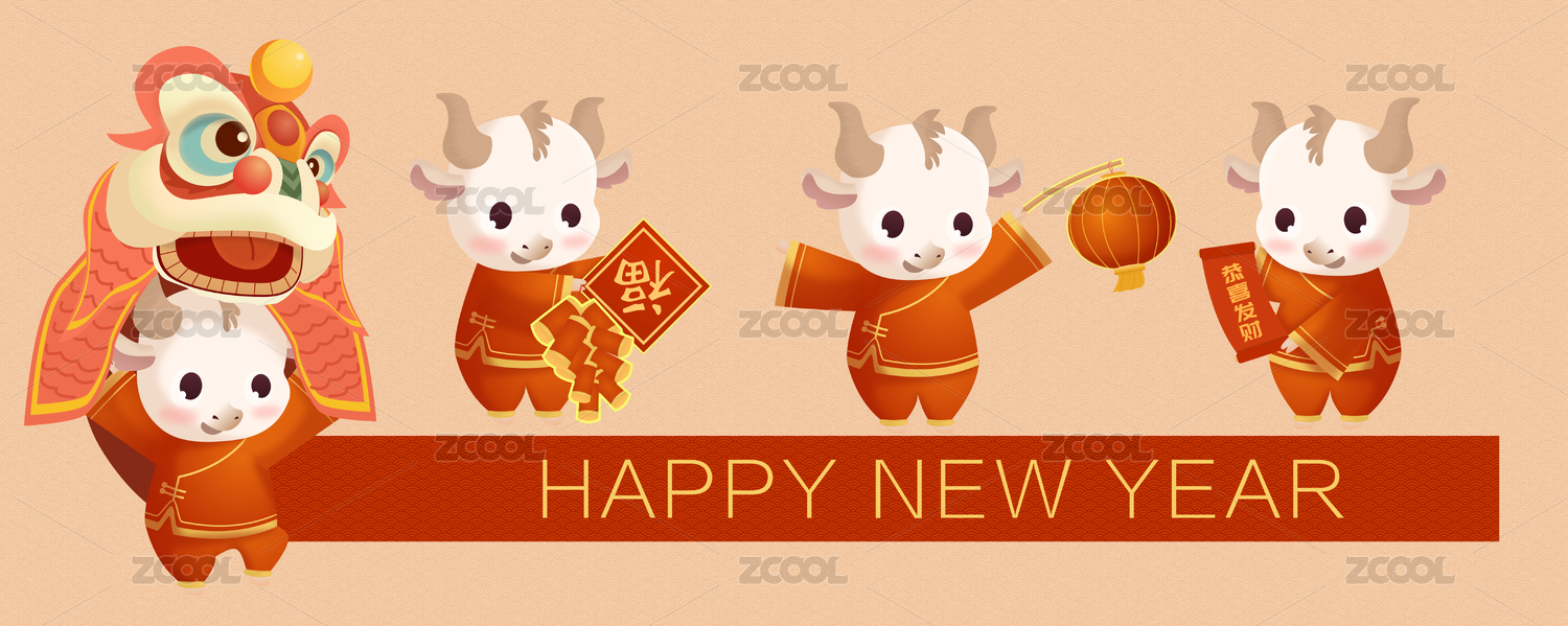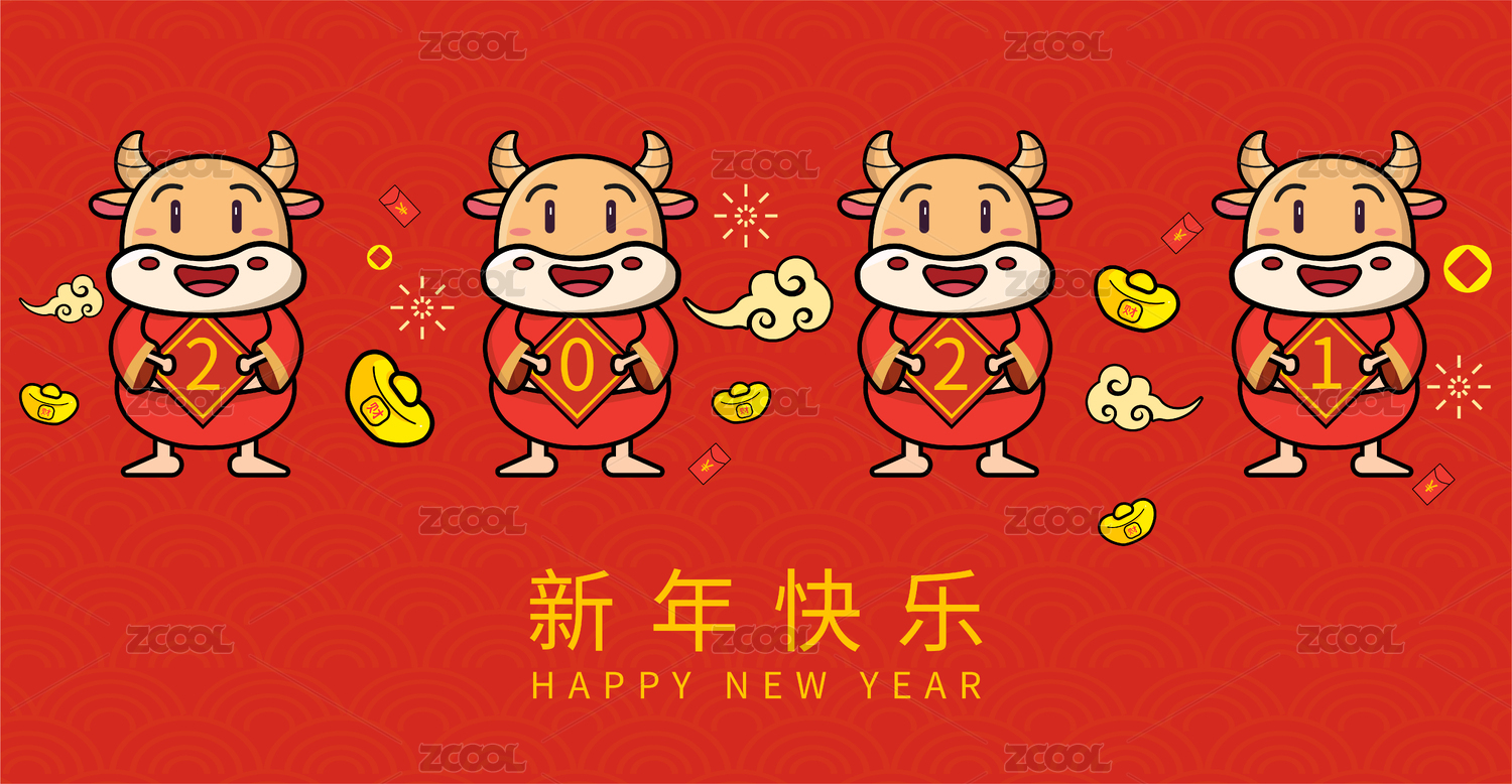 中国传统节日新年牛年手绘插画