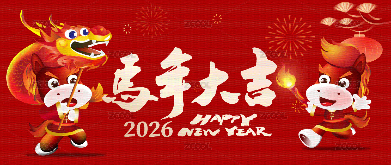 国潮马年2026双马贺岁吉祥物卡通庆典