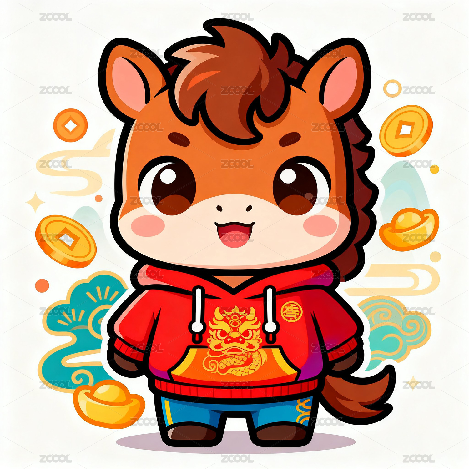 马年插画,马年,马,卡通,吉祥物,国潮风,马IP,拜年,喜庆,春节