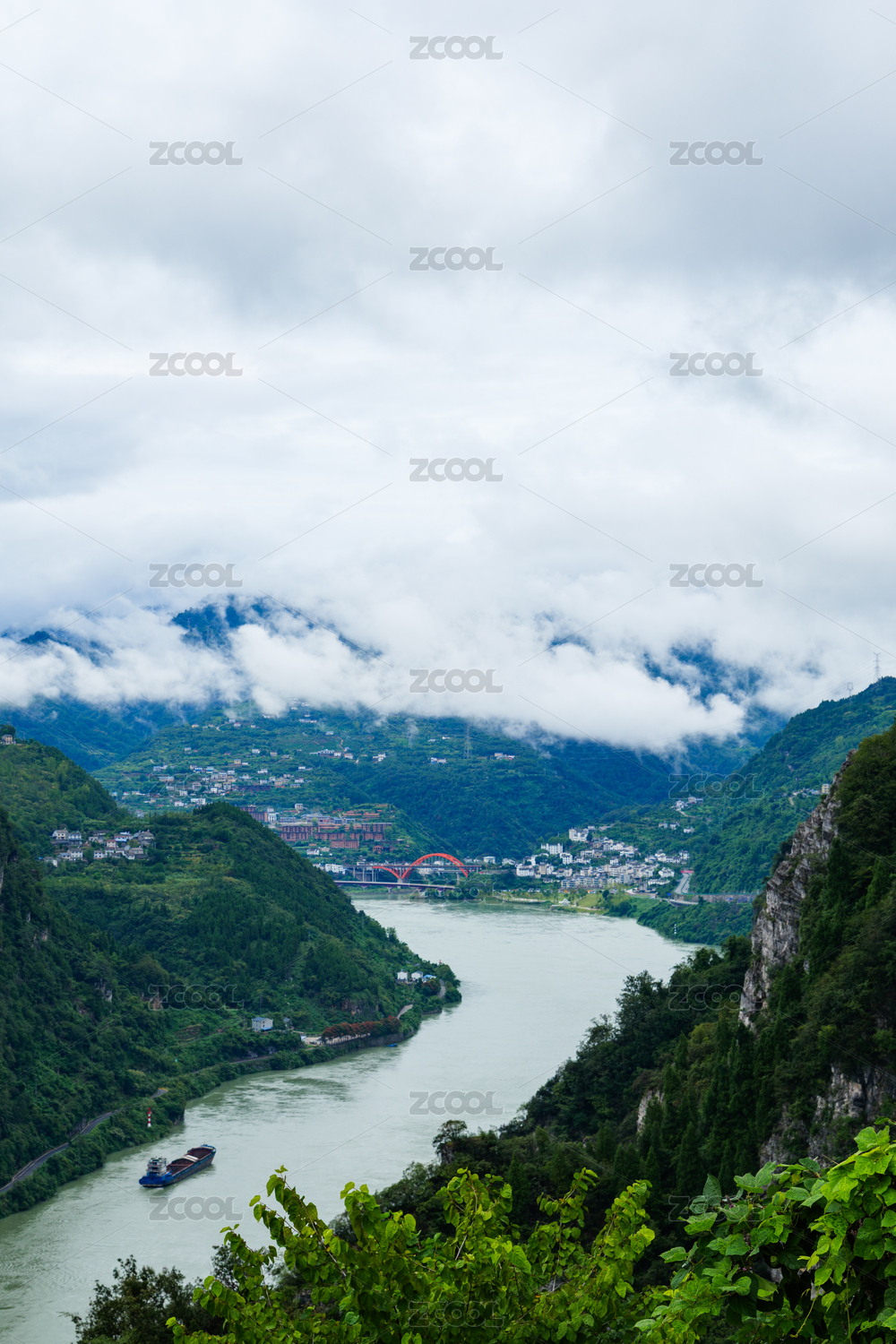 宜昌三峡西陵峡长江两岸高山峡谷森林云雾