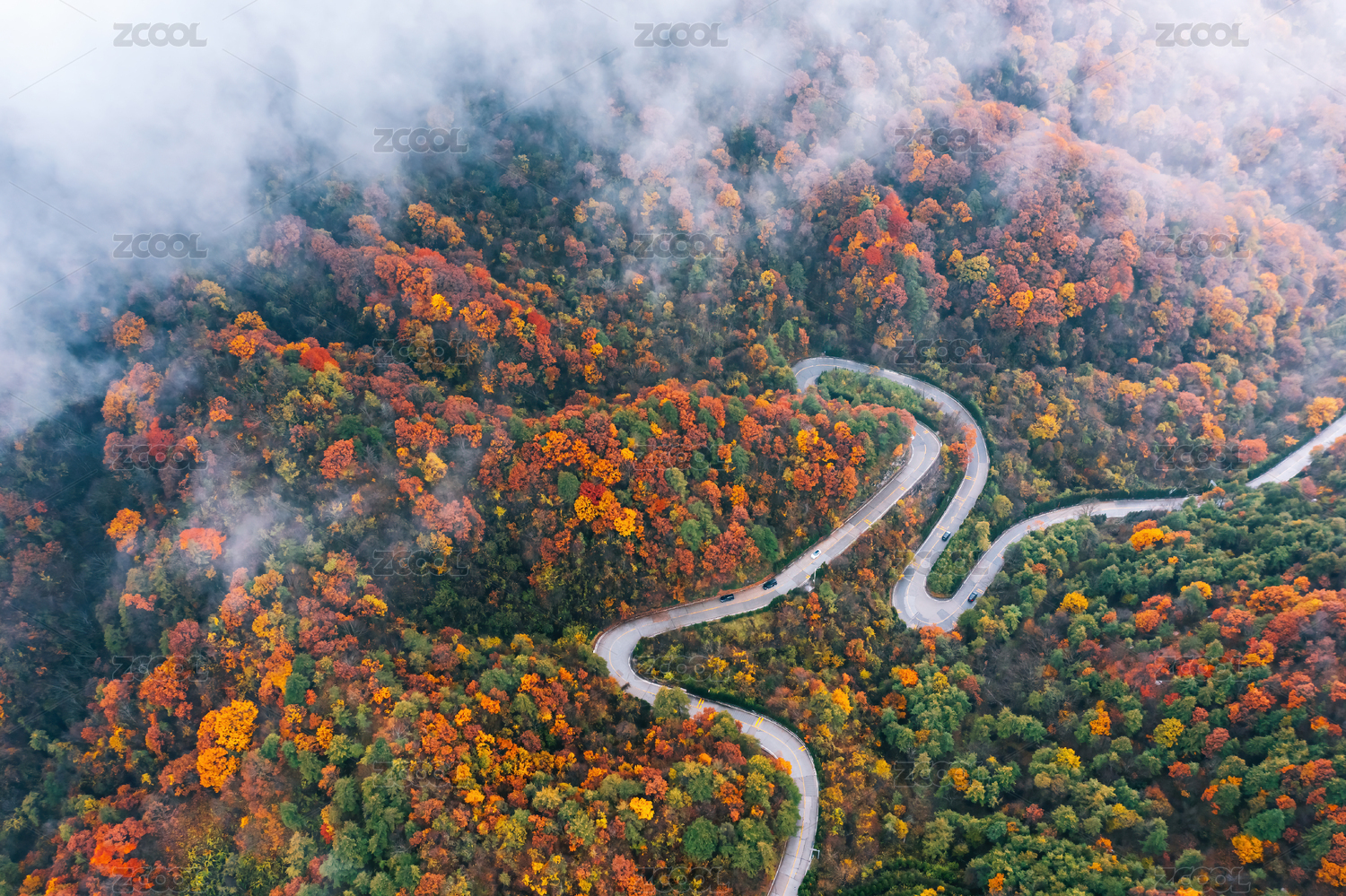 秋冬季高岩子国家森林自然公园山路弯弯十八