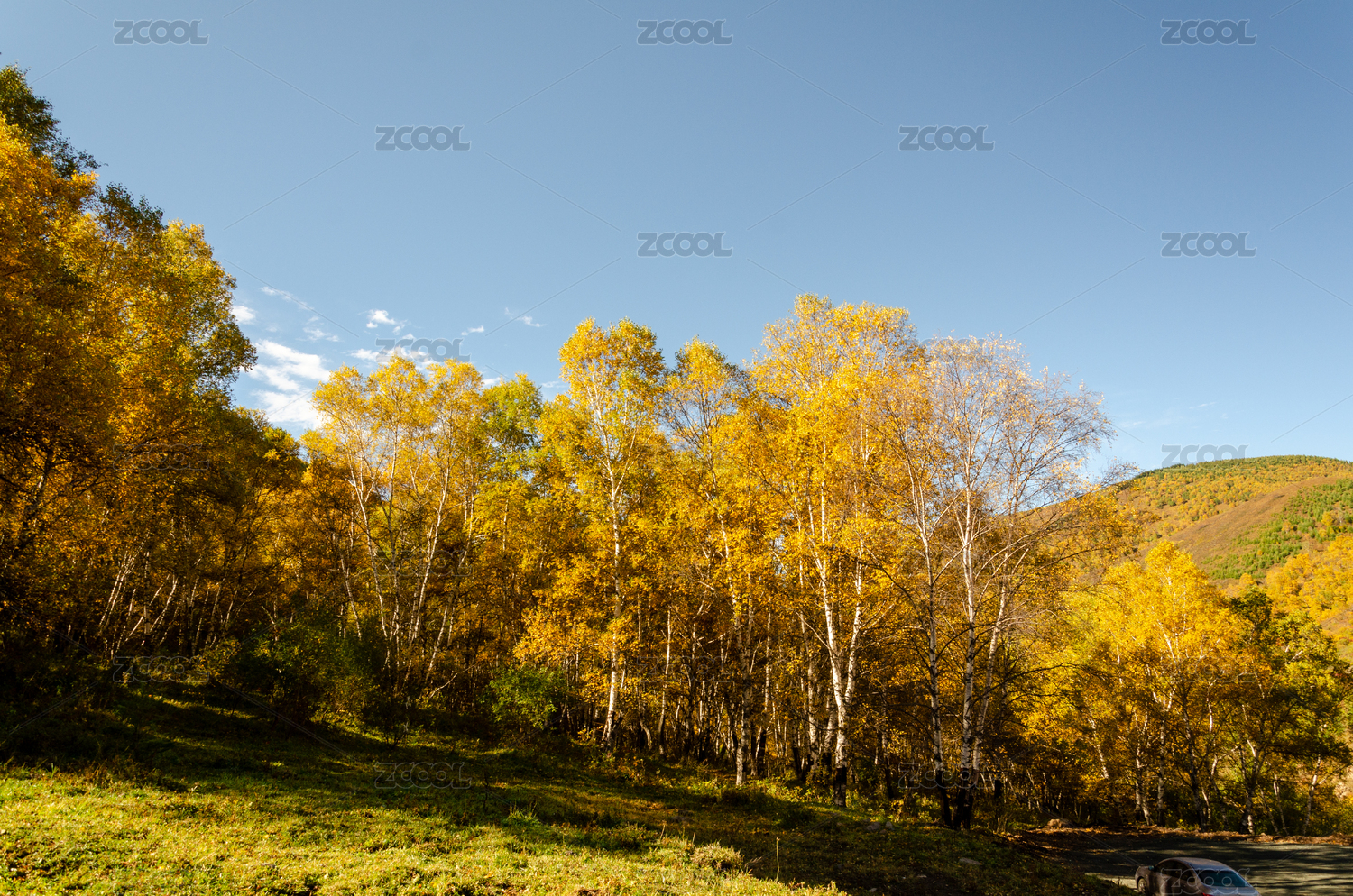 秋日山野白桦林景