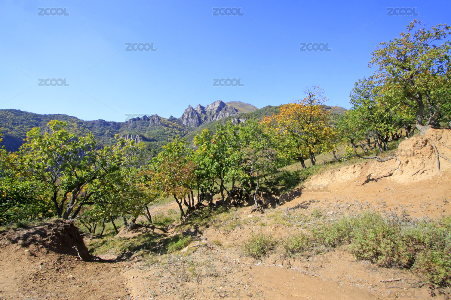 绿植,自然,远山,蓝天,植被,地形,红叶,秋景,植物,岩石
