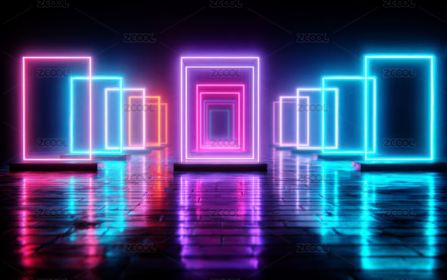 未来感霓虹立方体场景