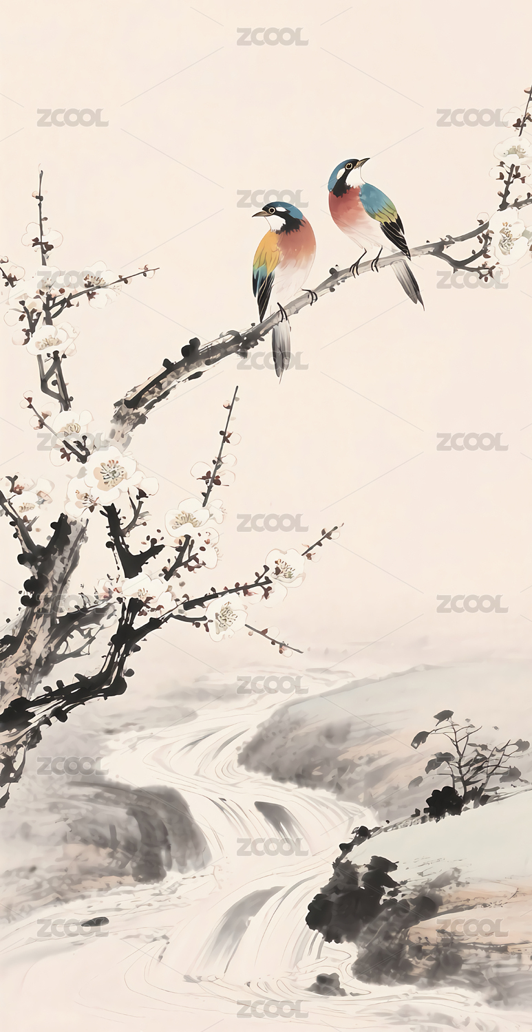 水墨画鸟语花香壁纸