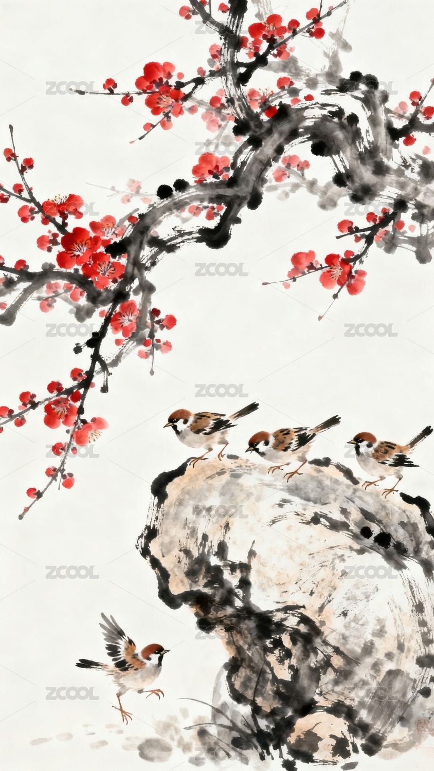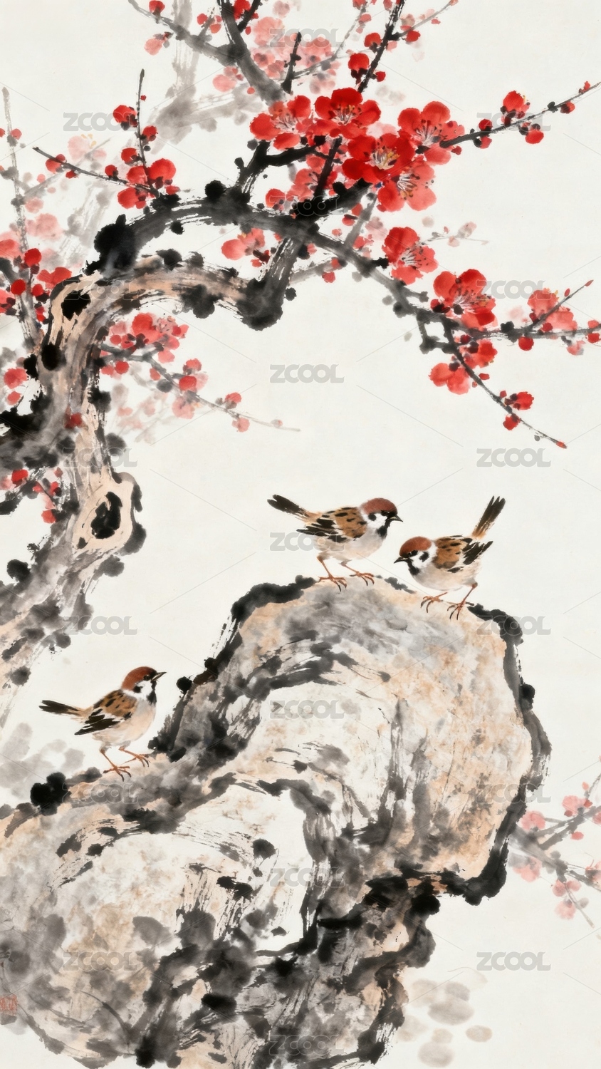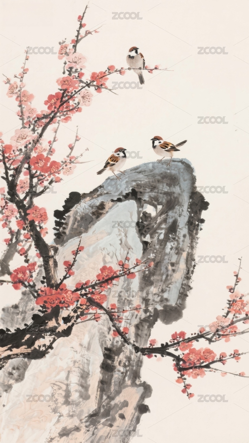 梅花枝上鸟栖石