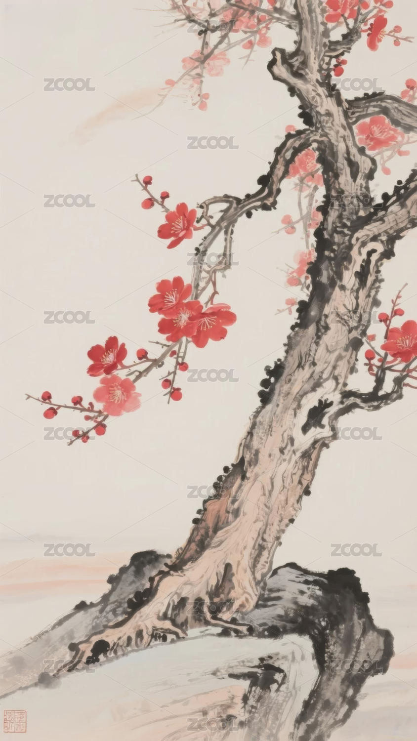一枝红梅国画插画
