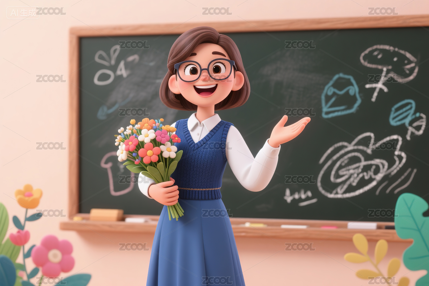 教师,学生,教室,插画,教育,黑板,花束,裙子,衬衫,教学