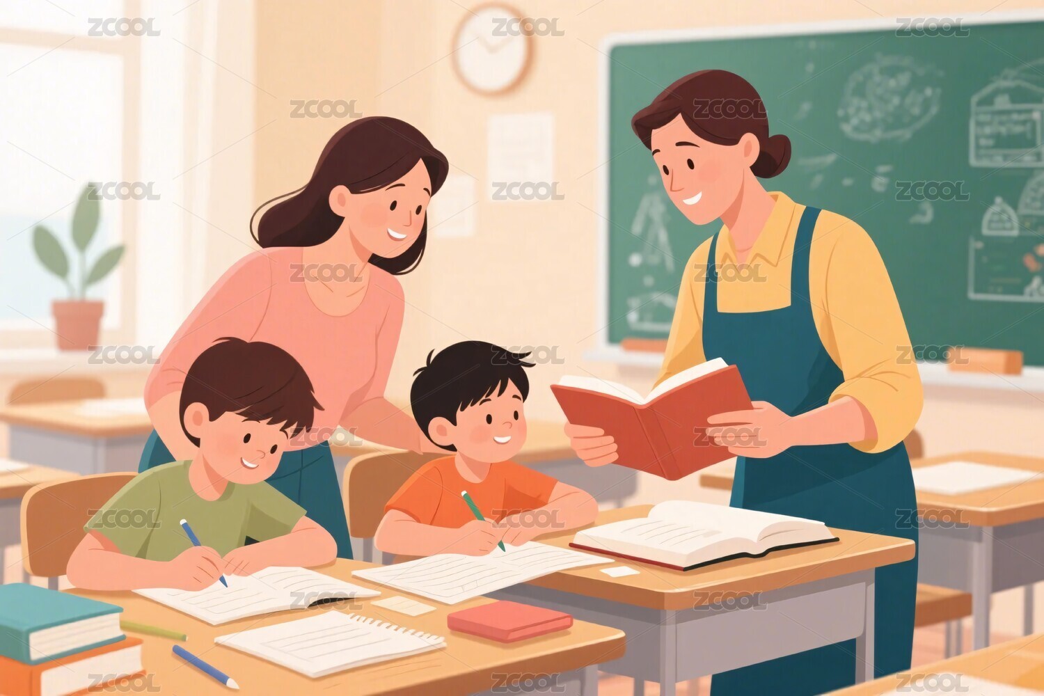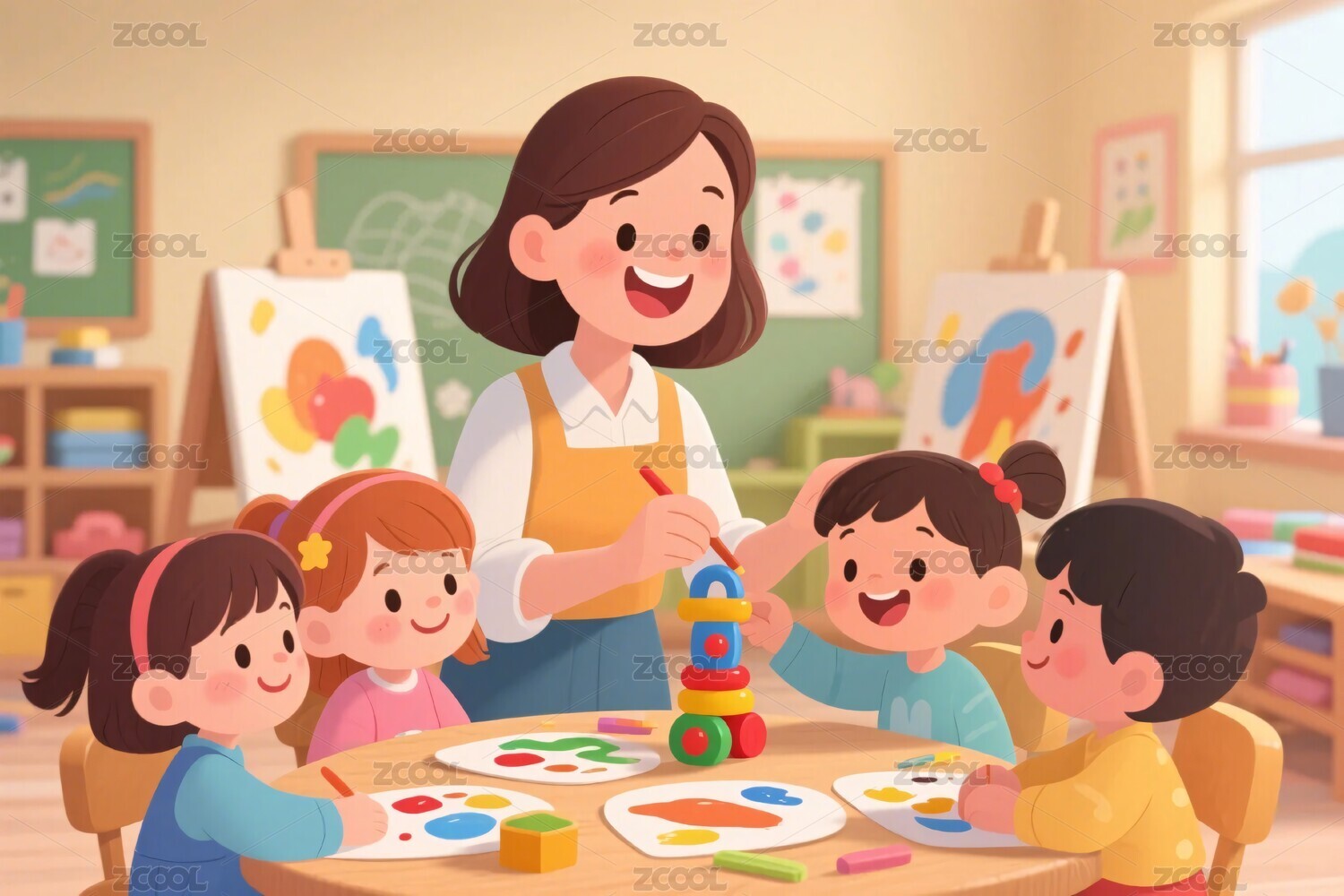 儿童,老师,教室,玩具,卡通,插画,儿童画,教育,课本,书架