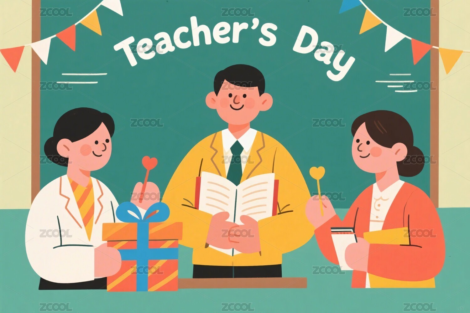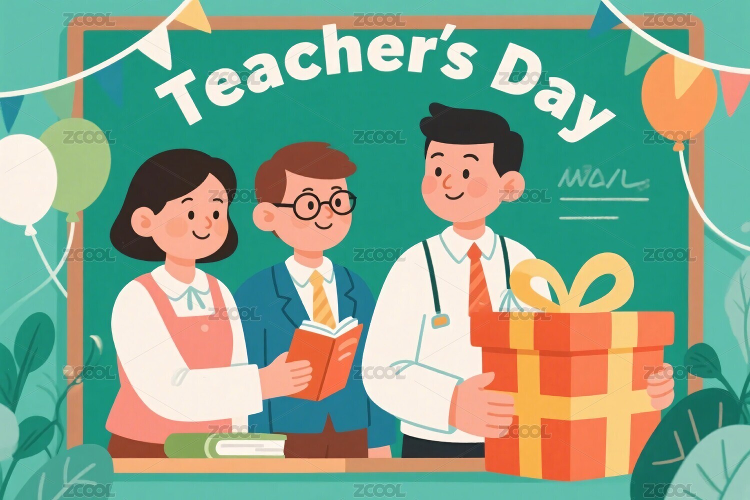 教师节,师生,鲜花,感恩,校园,黑板,插画,教师,学生,送花