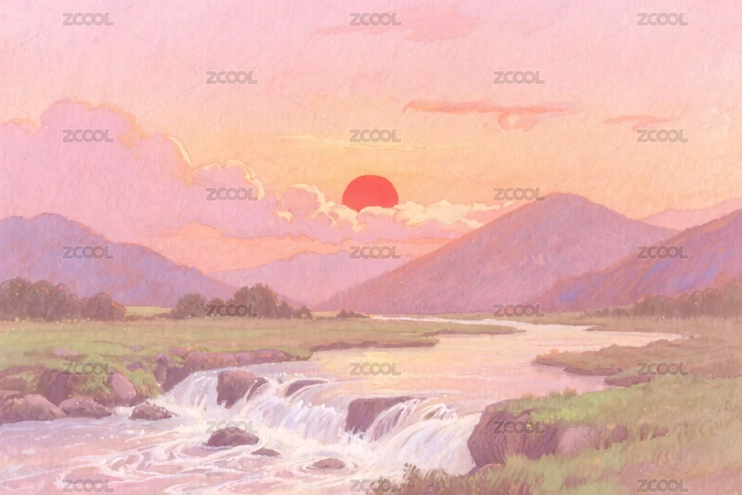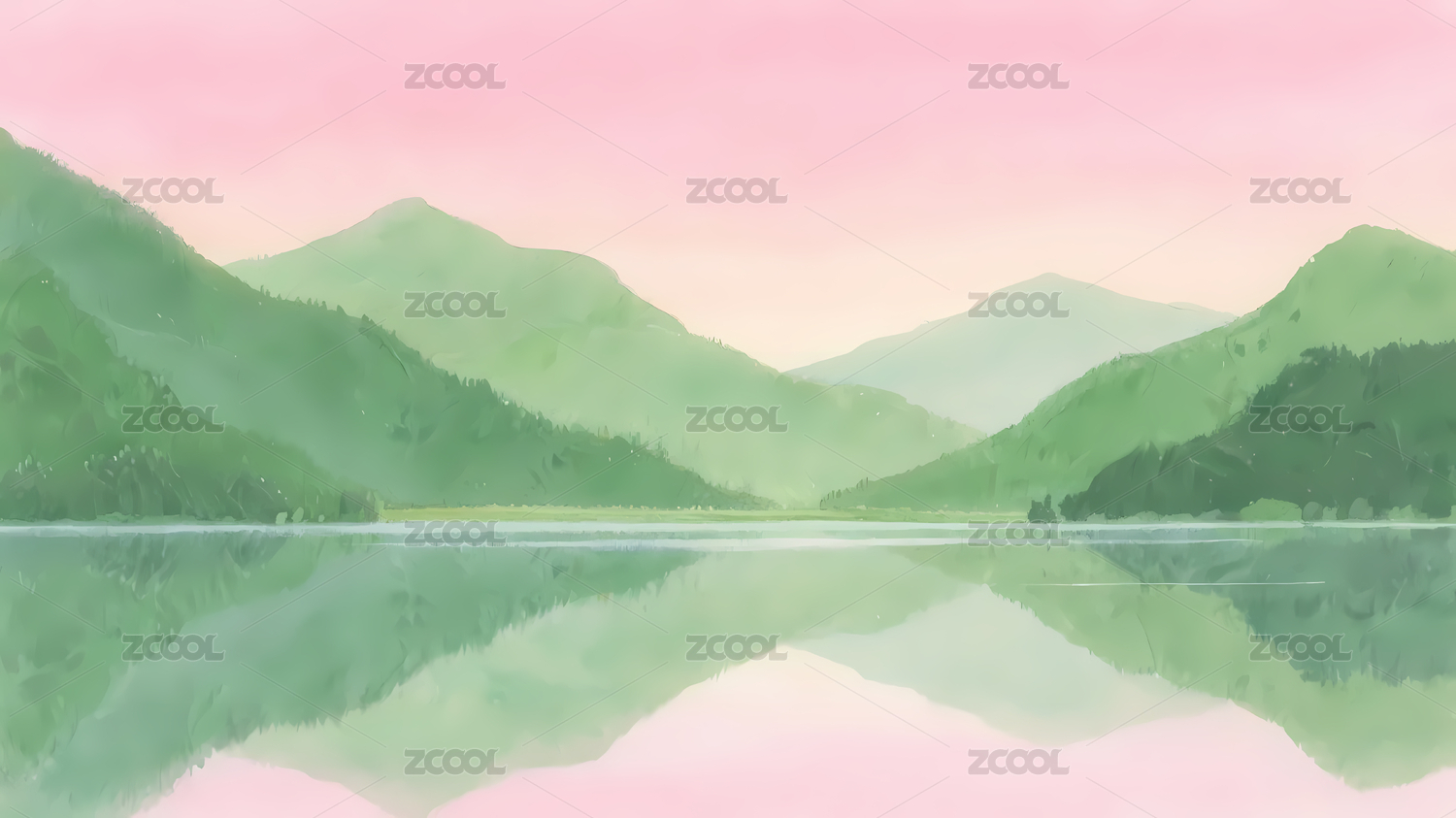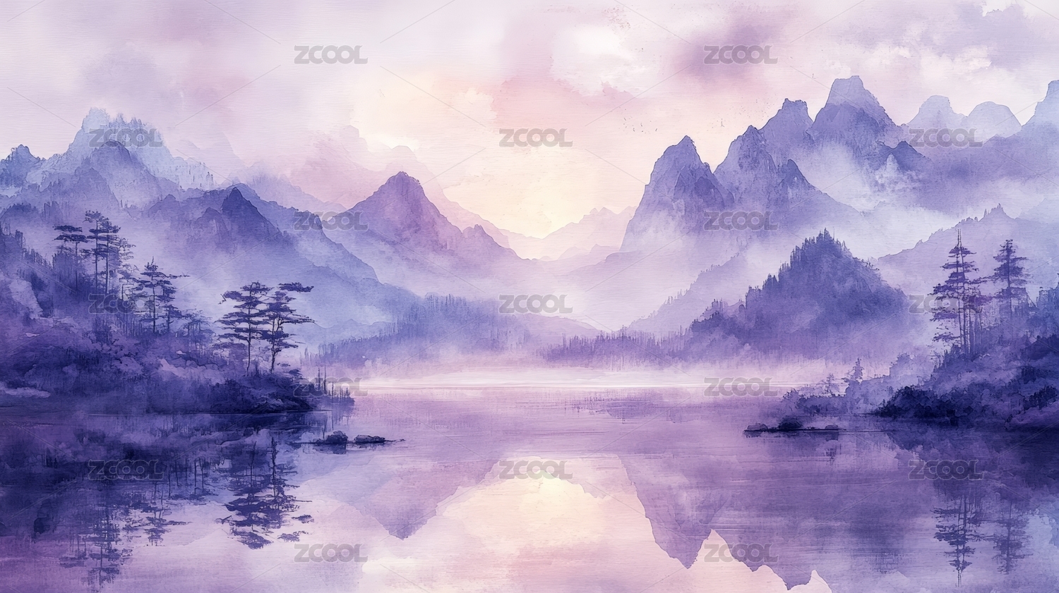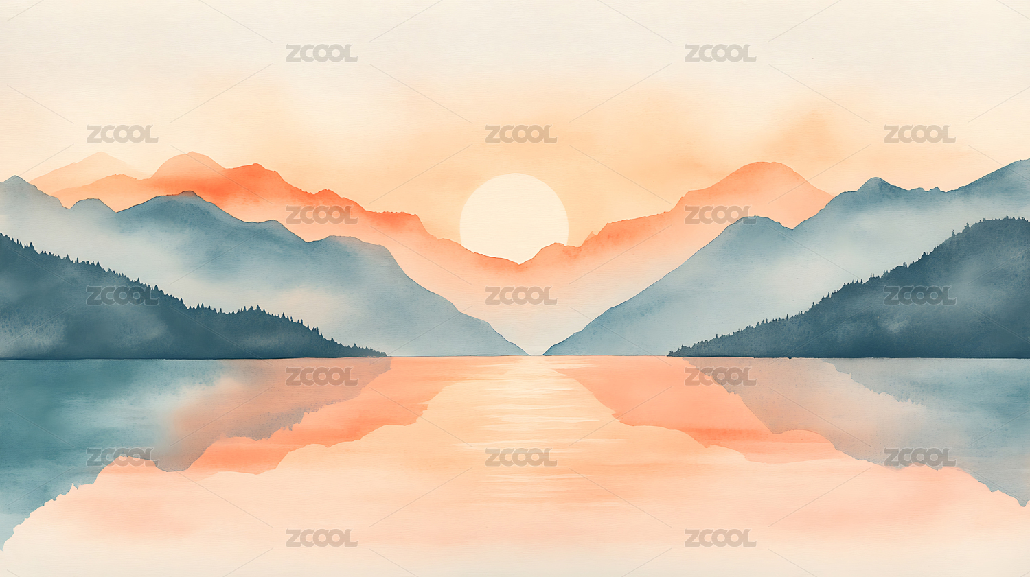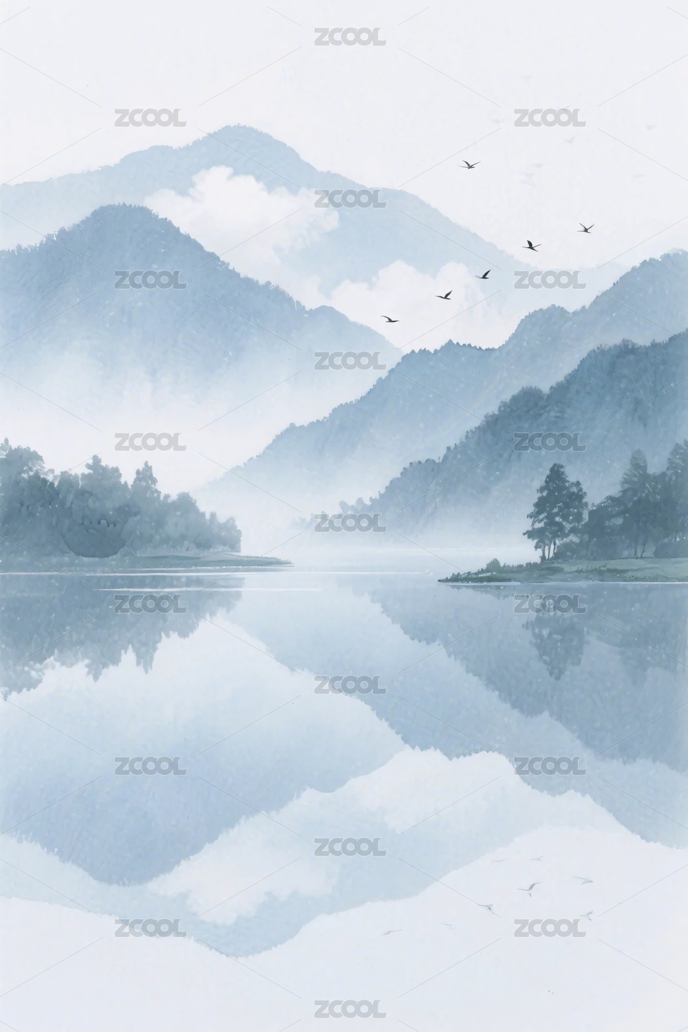 山水,风景,插画,山水画,湖泊,山脉,自然,水彩画,天空,山水意境