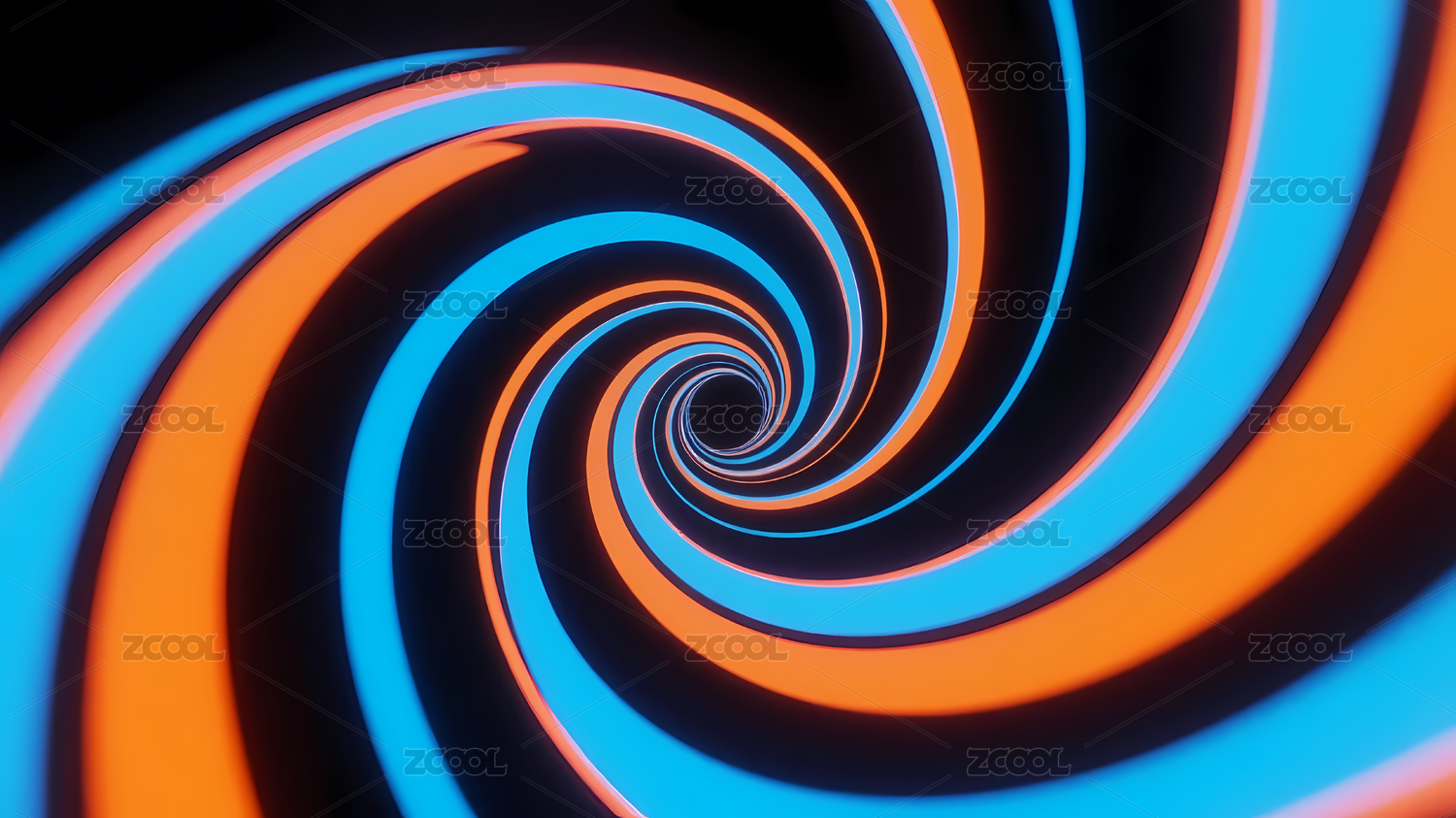 蓝橙螺旋漩涡图案黑色底