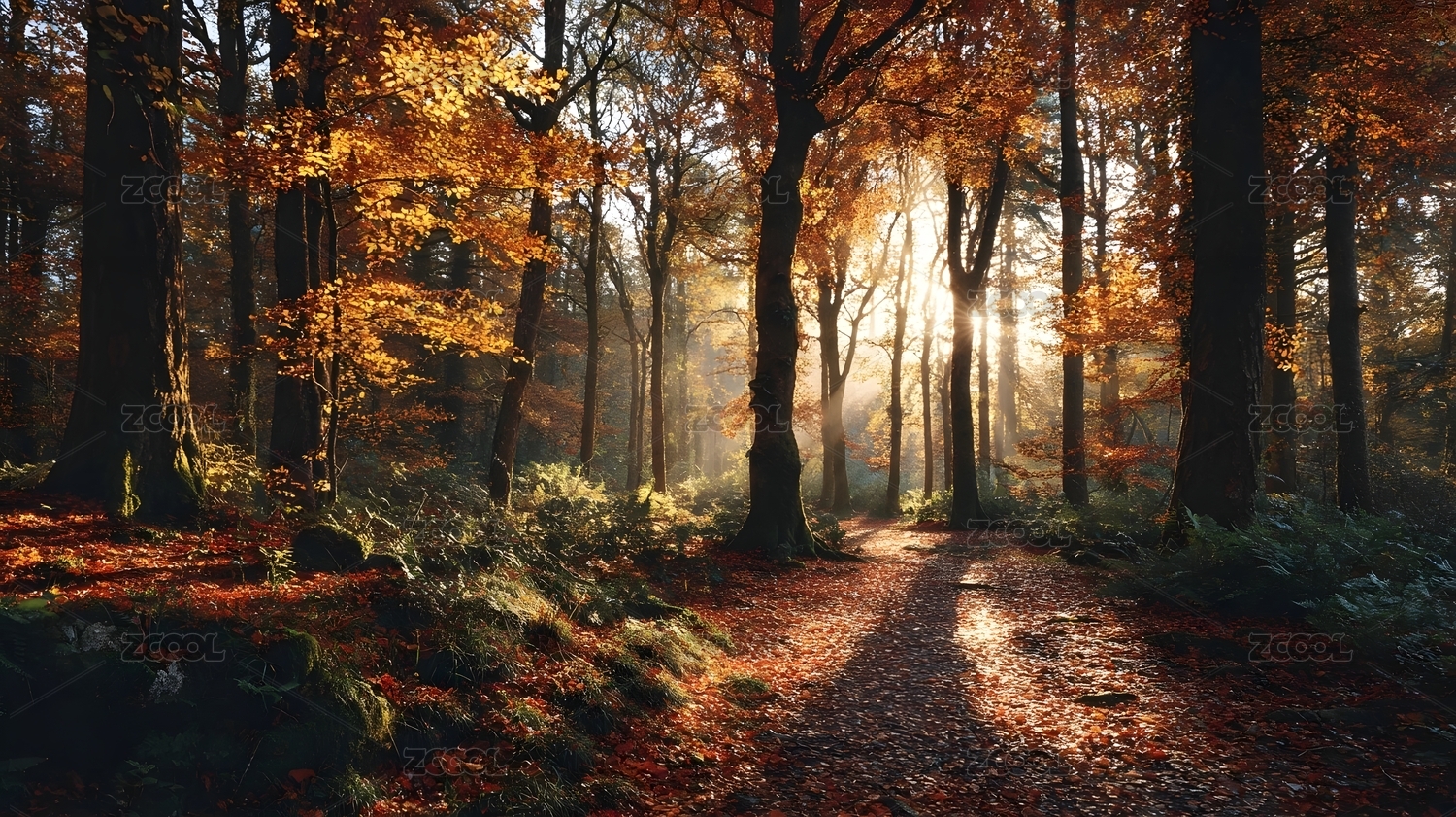 秋日森林阳光洒落美景