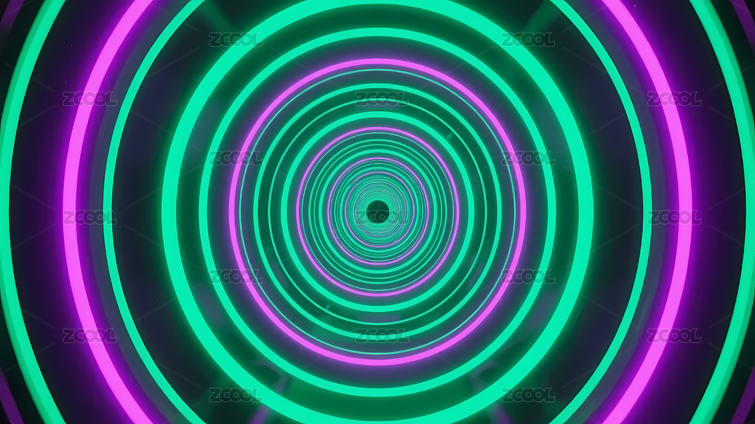 红蓝色霓虹灯环绕构成的发光通道隧道