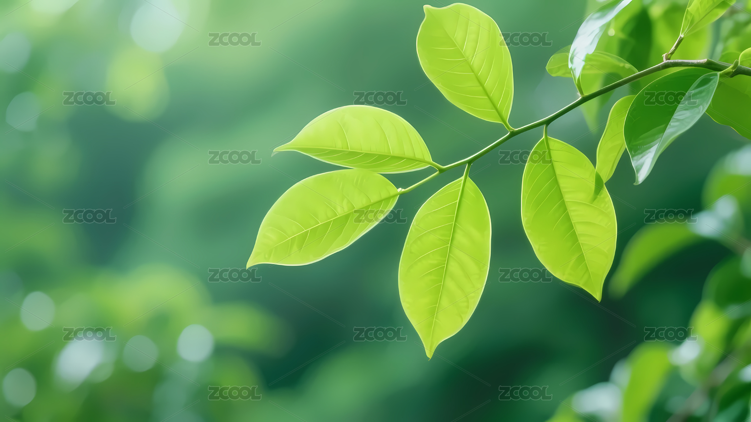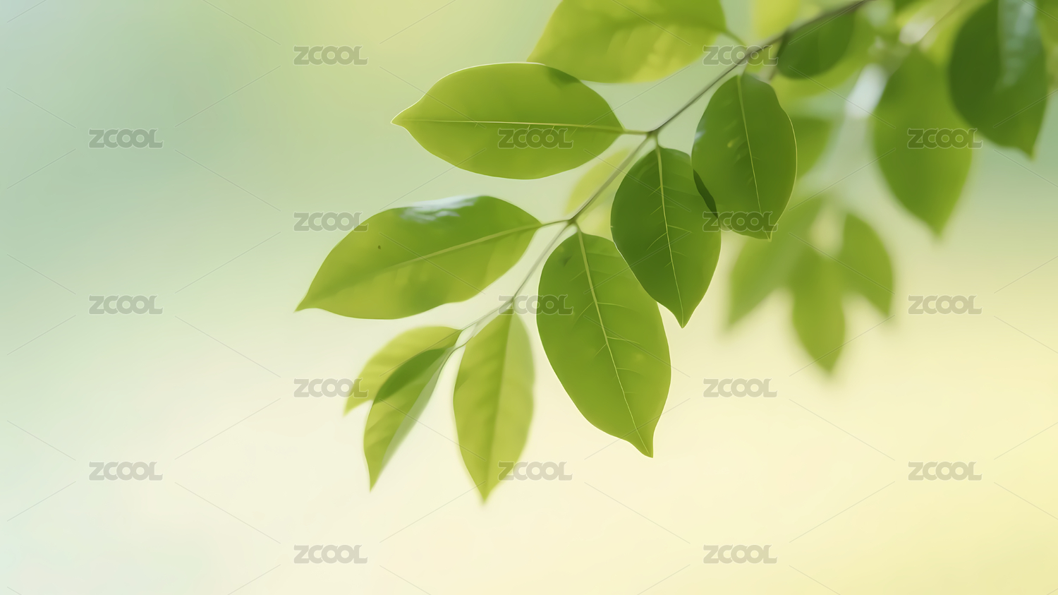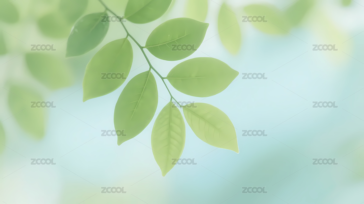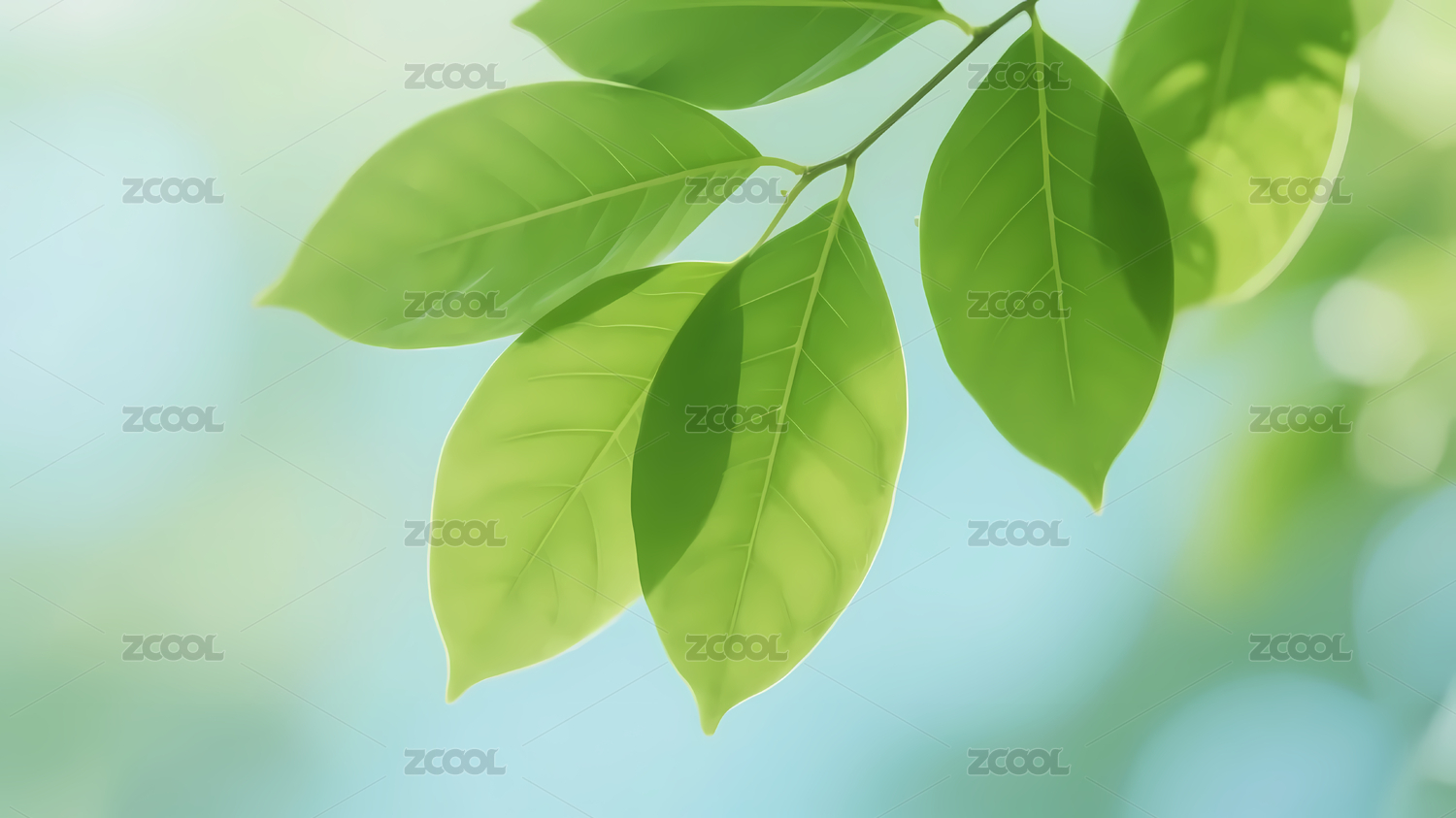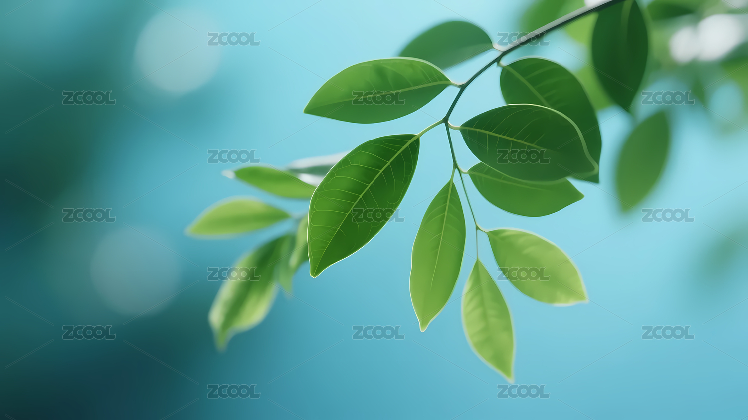 蓝色,清新,背景,树枝,绿叶,自然,植物,生态,简约,宁静