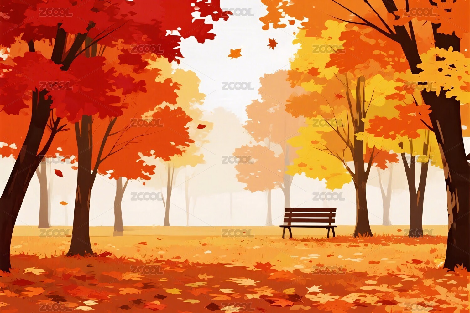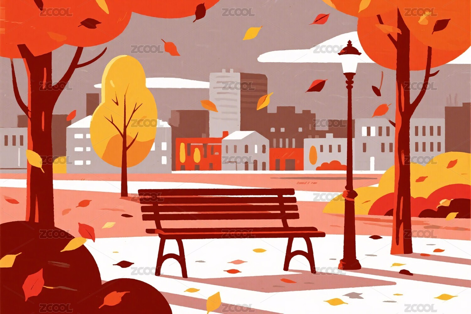 长椅,树木,落叶,城市背景,插画,秋天,公园,自然,景色,元素