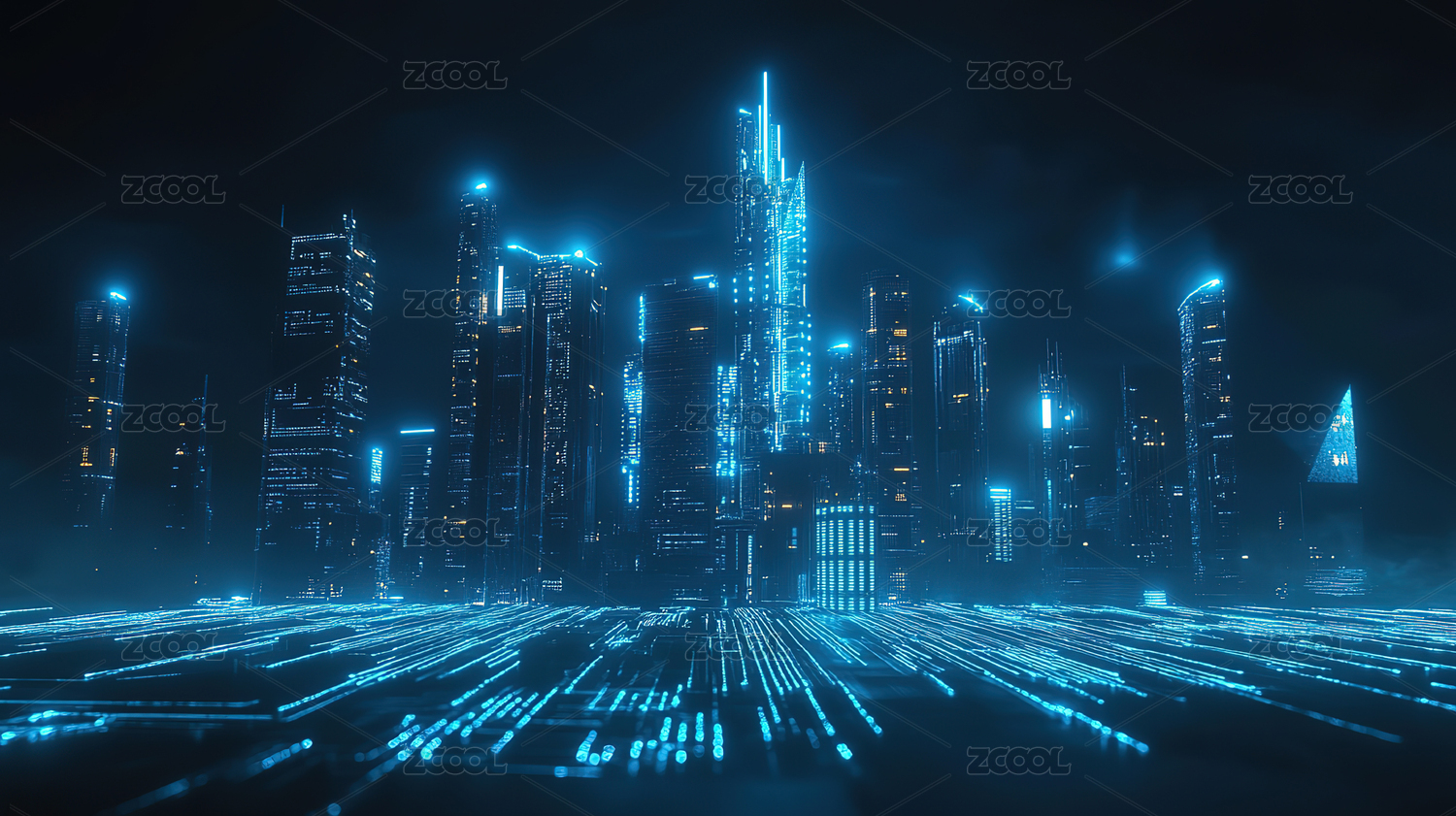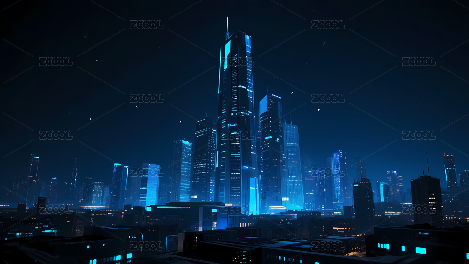 未来感蓝光城市夜景