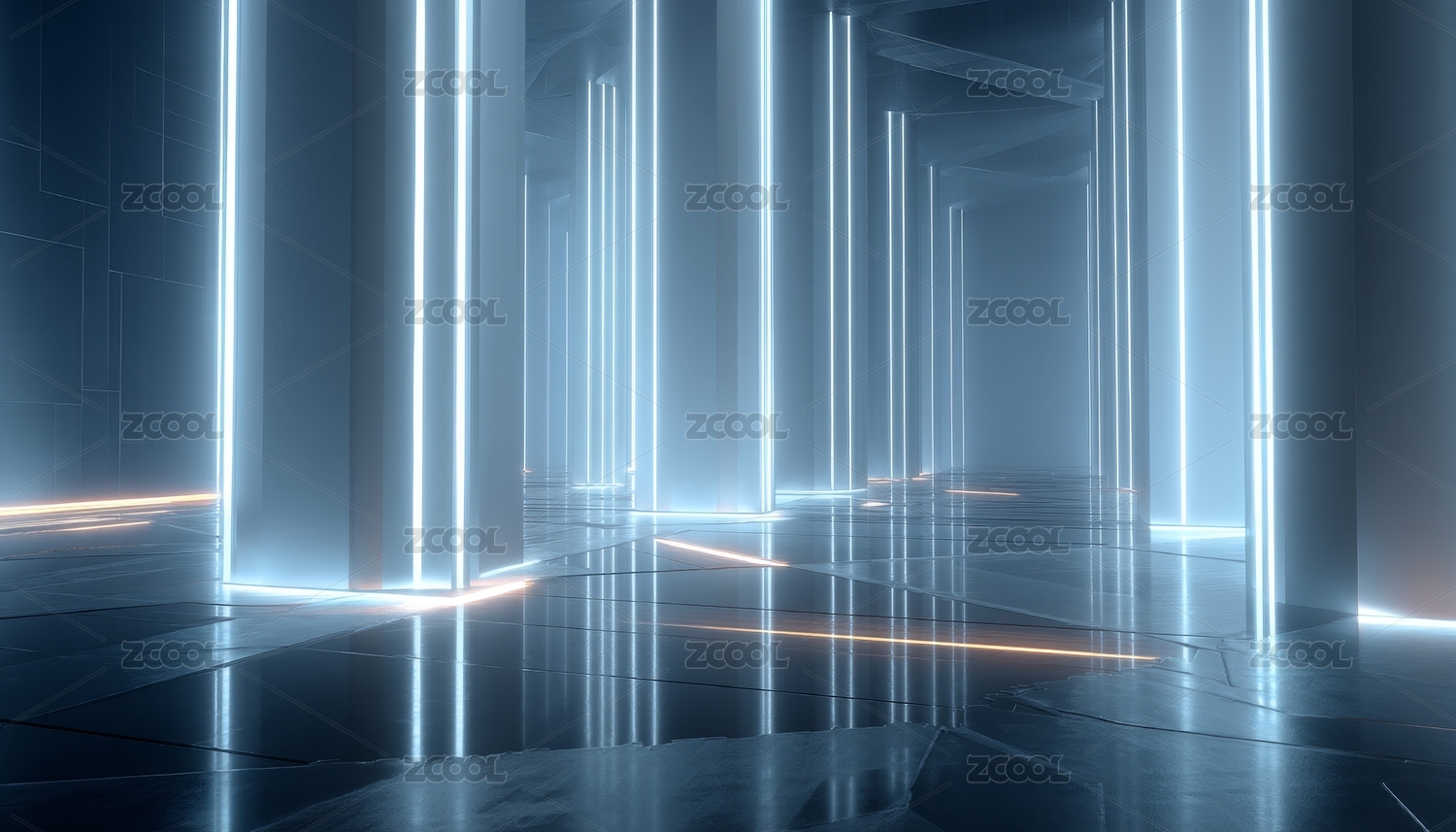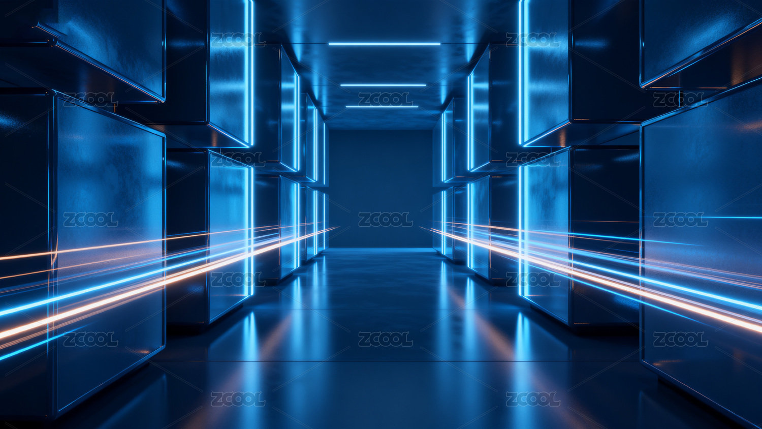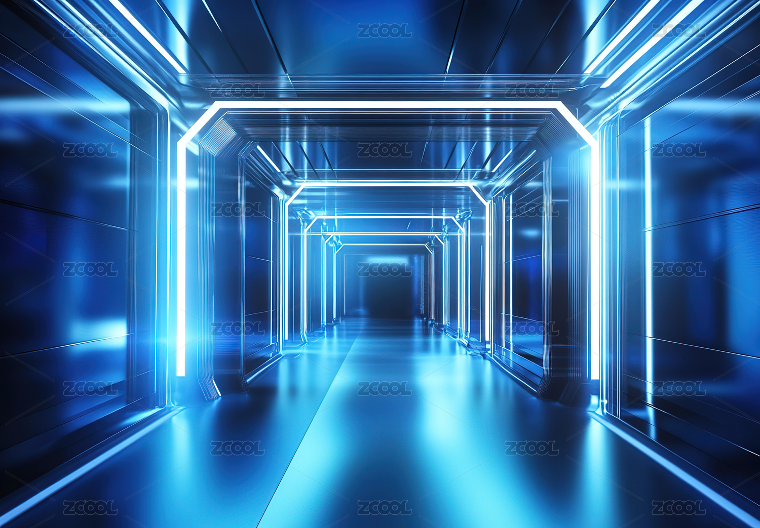 蓝色,灯光,结构,科技,设计,反射,对比,简洁,几何,立体