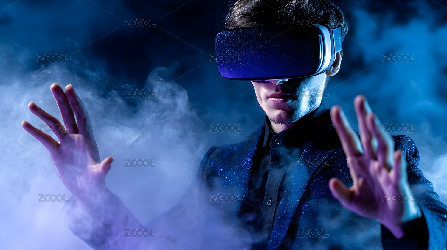 西装男子佩戴VR头显