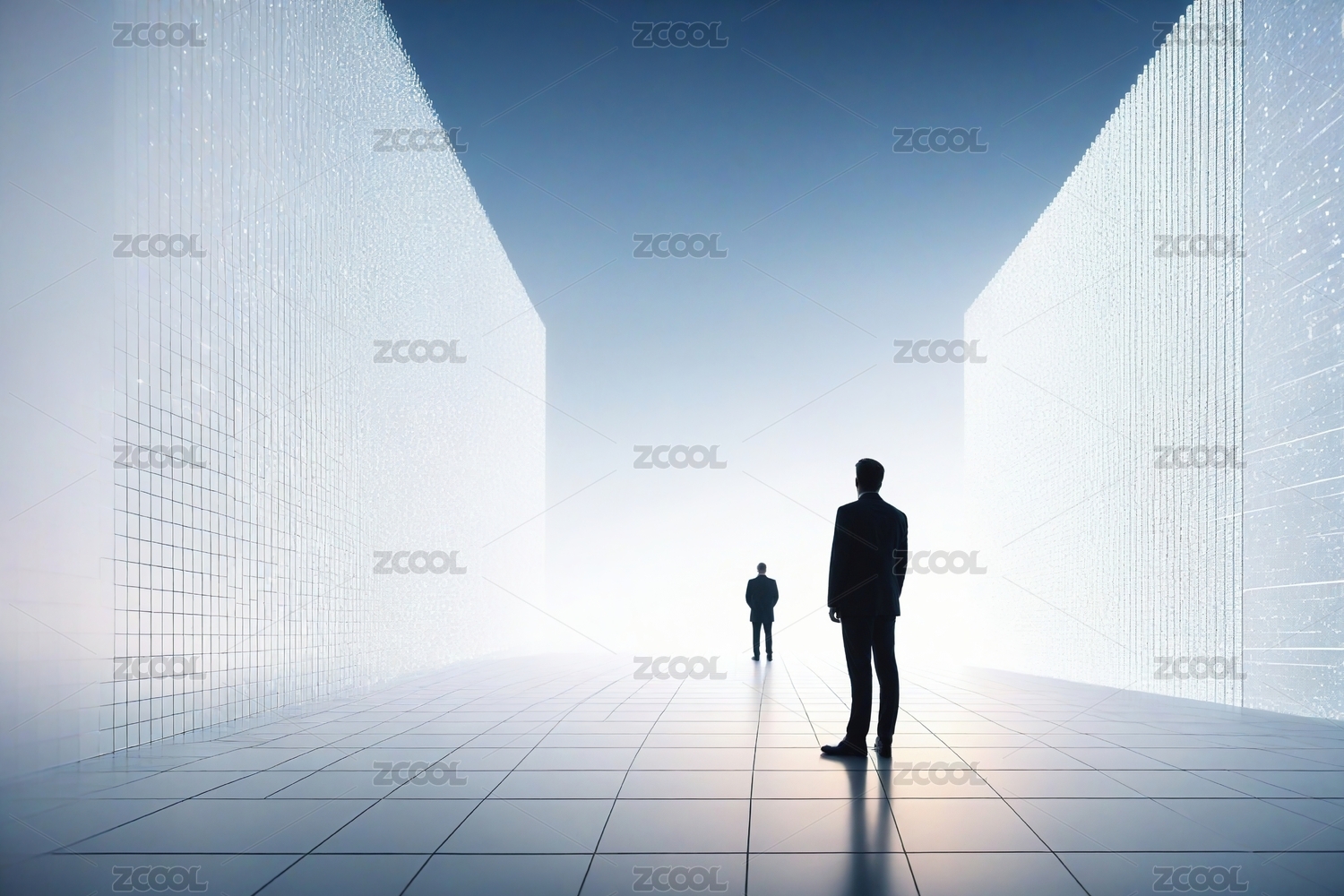西装男子背影墙前沉思