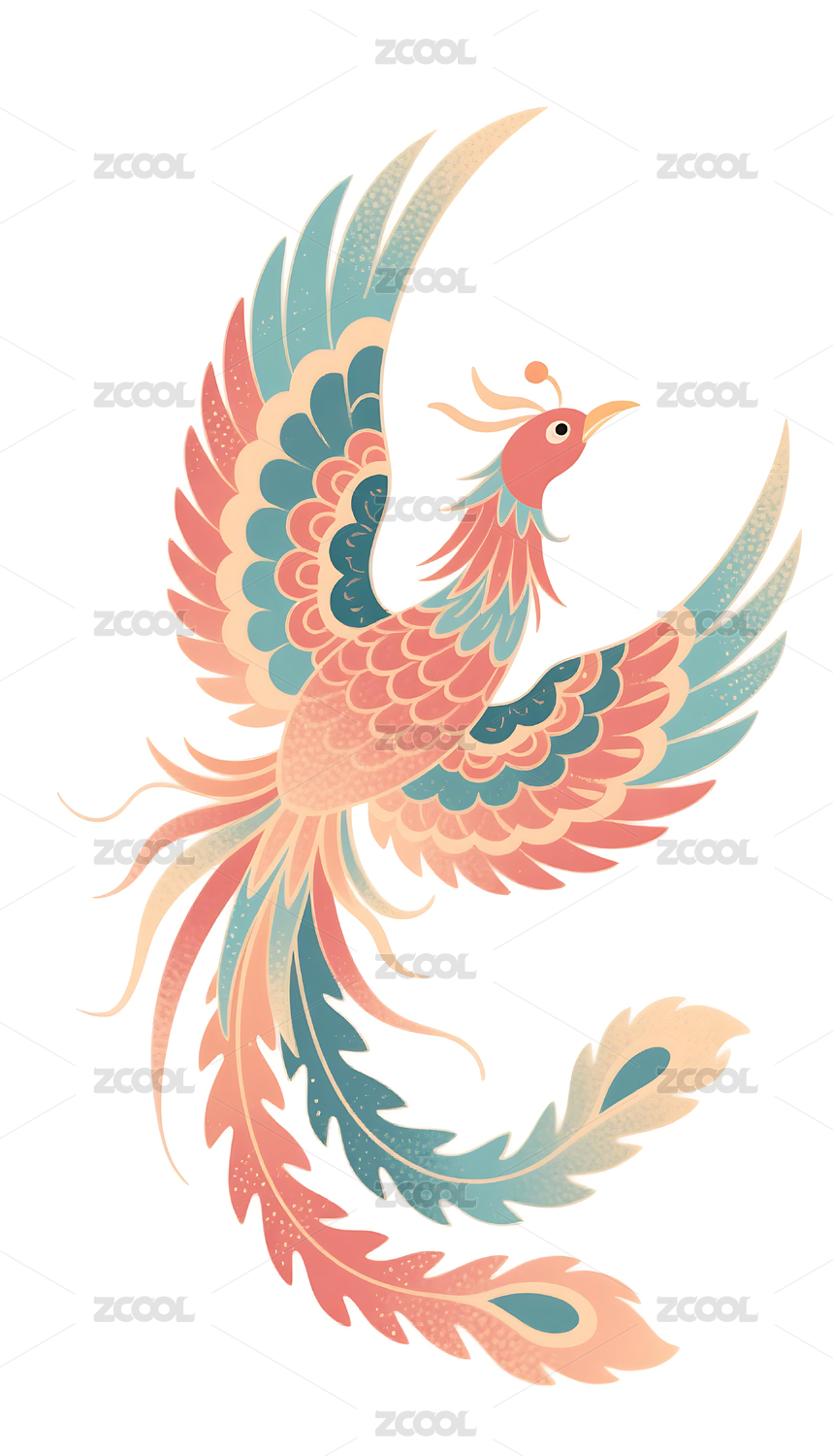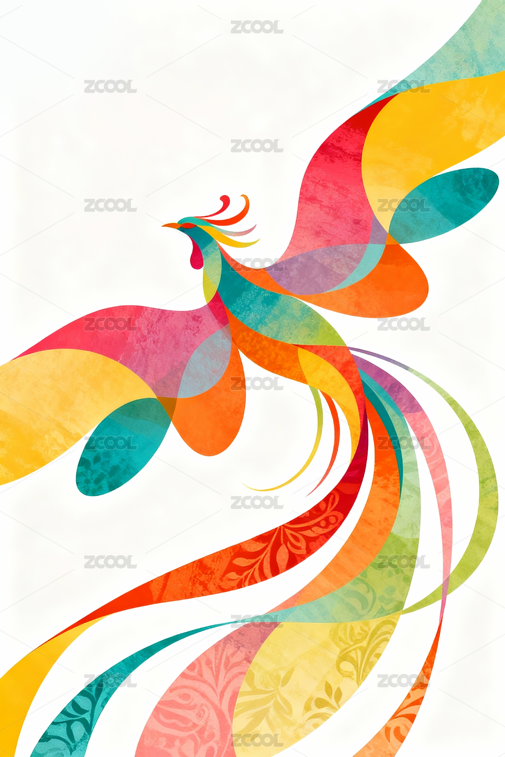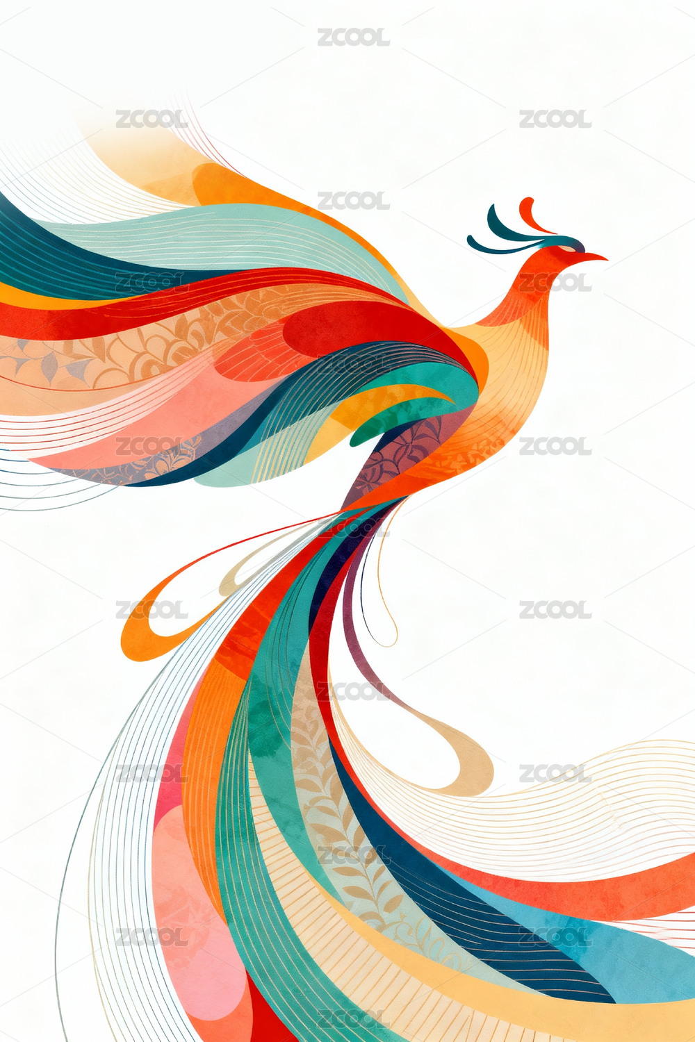 凤凰,彩色,展翅,飞翔,五彩,艺术,插画,抽象,线条,彩带