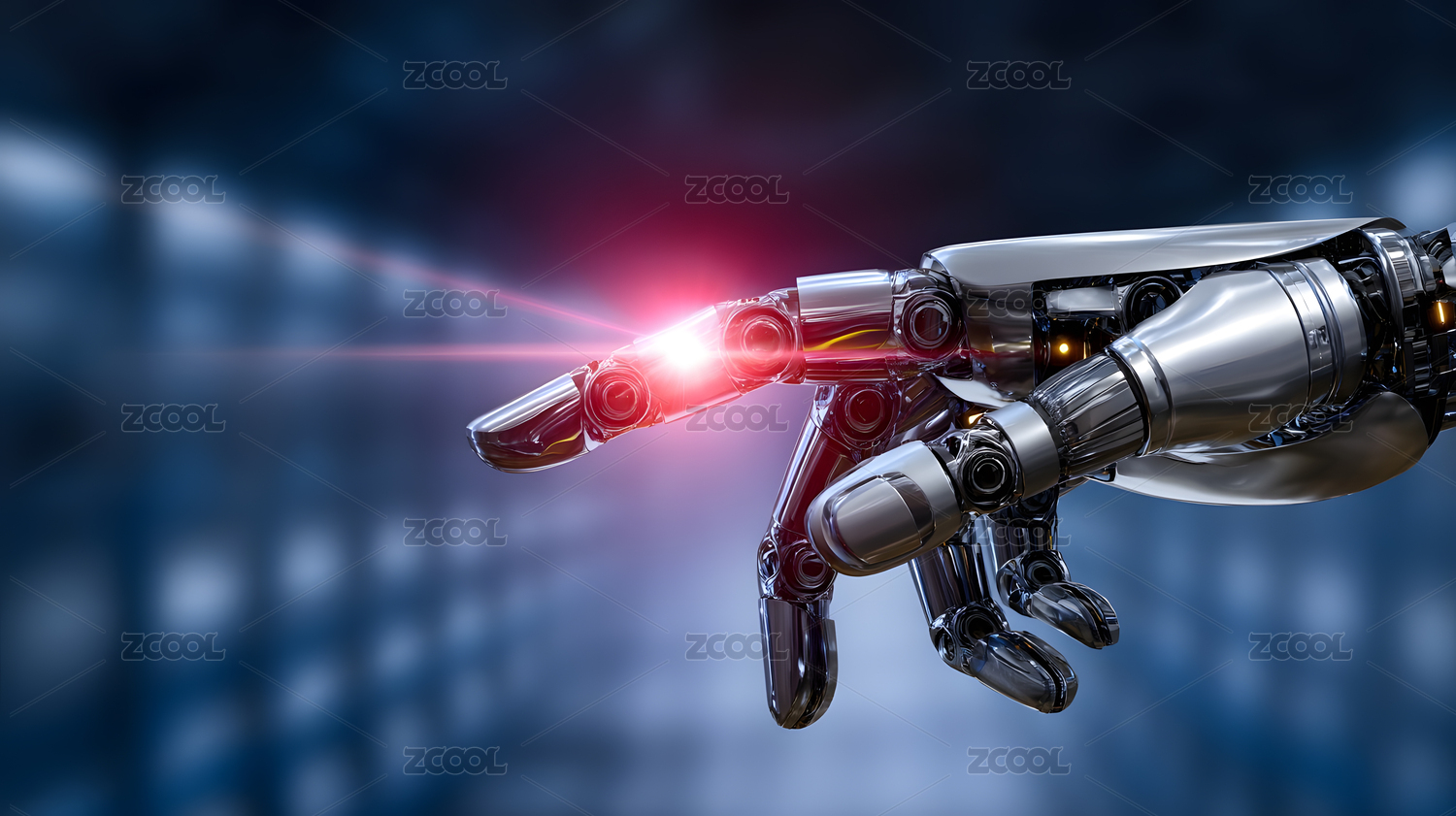 机械手指发射红色激光光束