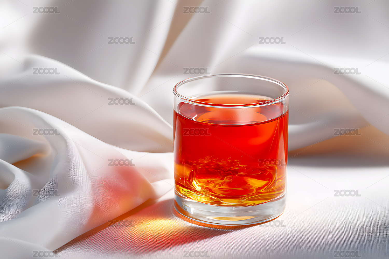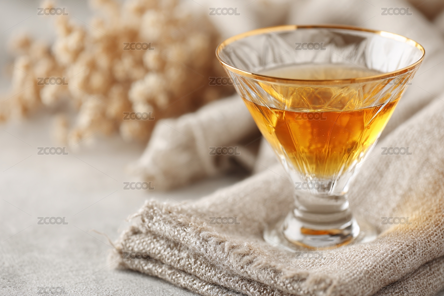 酒杯,酒液,玻璃杯,饮品,桌面,布料,丝带,浅色,花纹,柔光