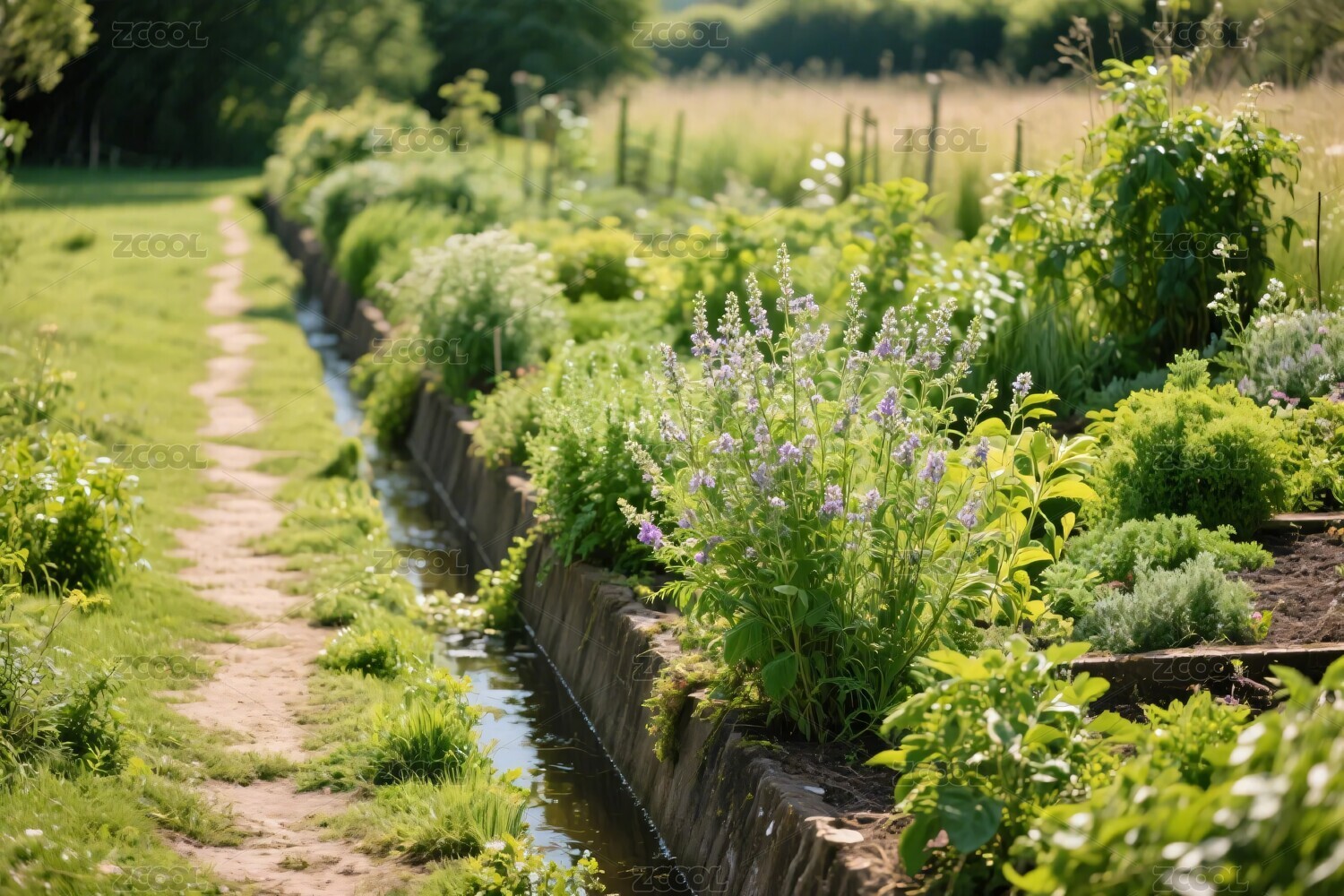 田园菜园中的绿植小径