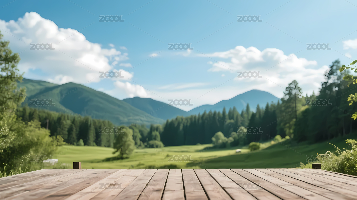 一张在郁郁葱葱绿色森林环境中的空木桌