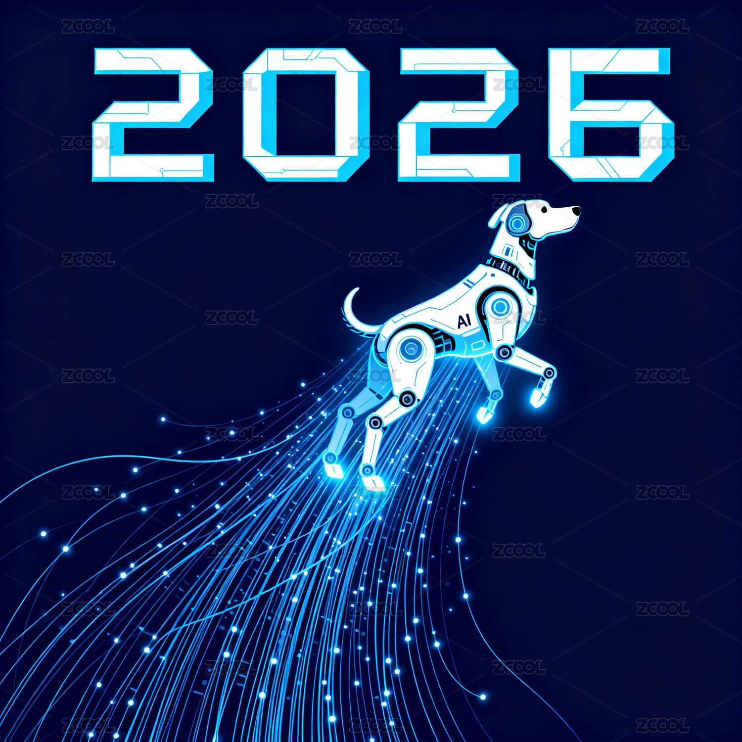 蓝色背景里的线条机器狗和2026