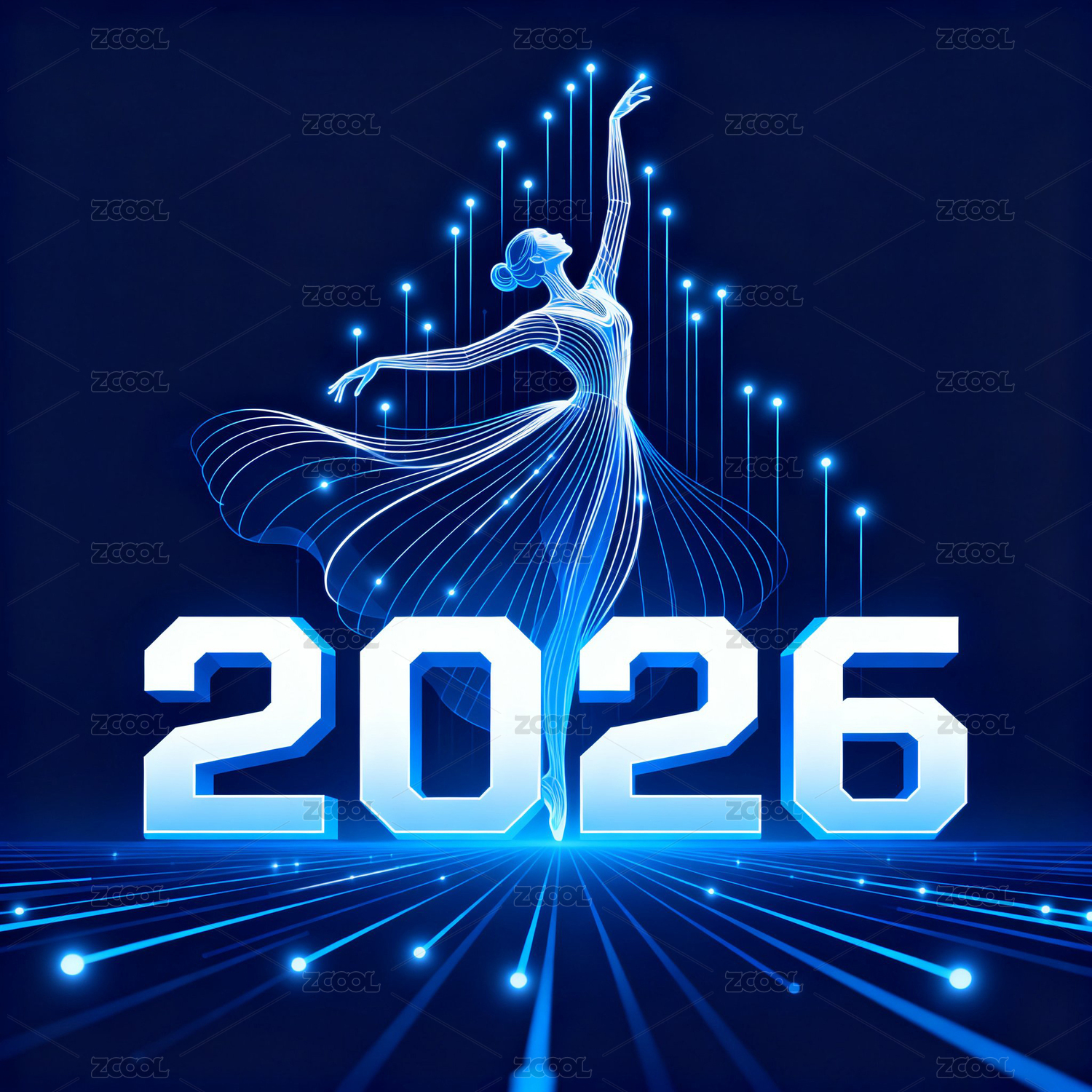 蓝色背景里的线条舞女和2026
