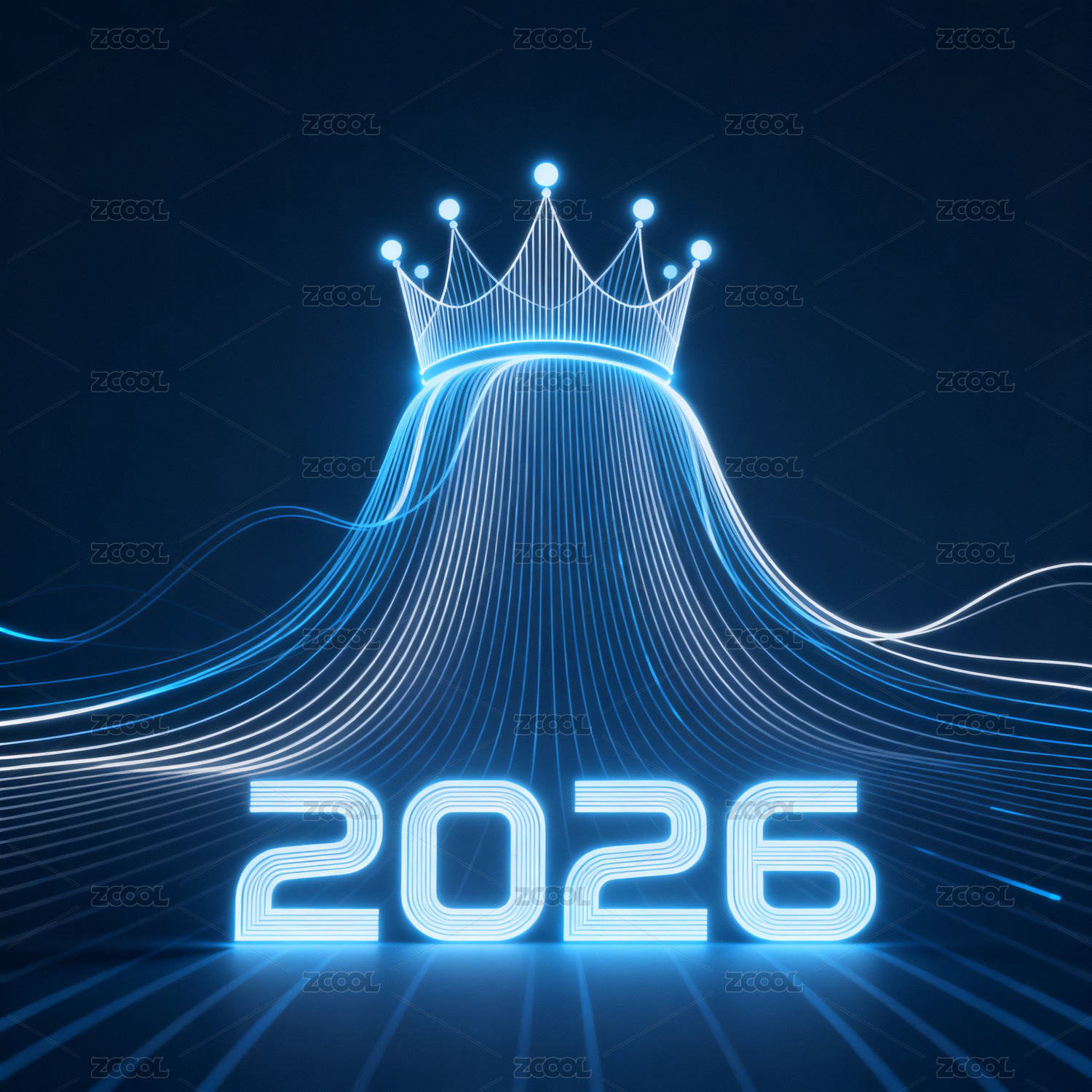 蓝色背景里的线条皇冠和2026