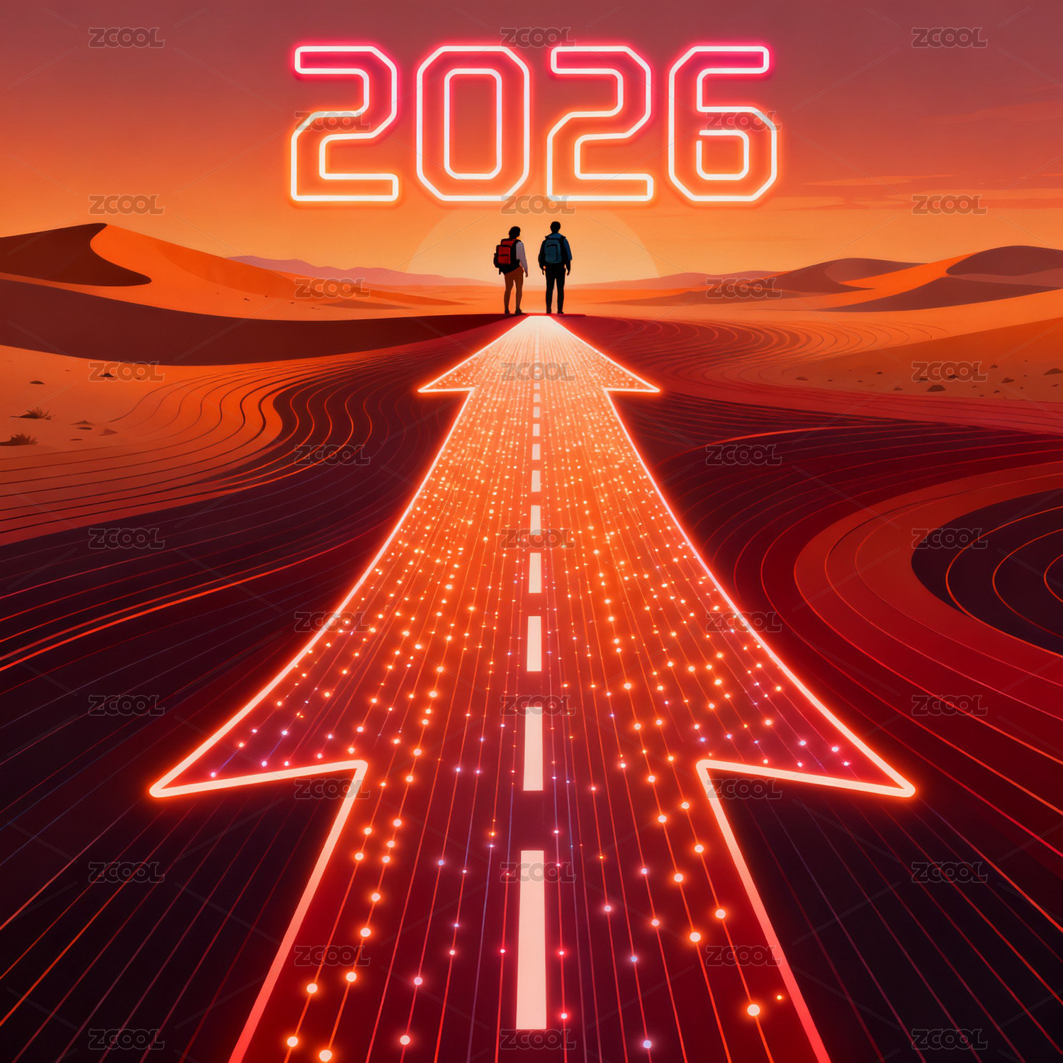 2026情侣沙漠徒步旅行概念图