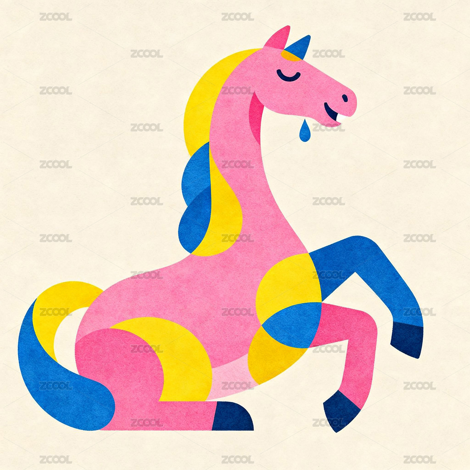 多巴胺色系,活力,弧形,色块,马,马年,抽象,多巴胺色彩,奔跑,跳跃