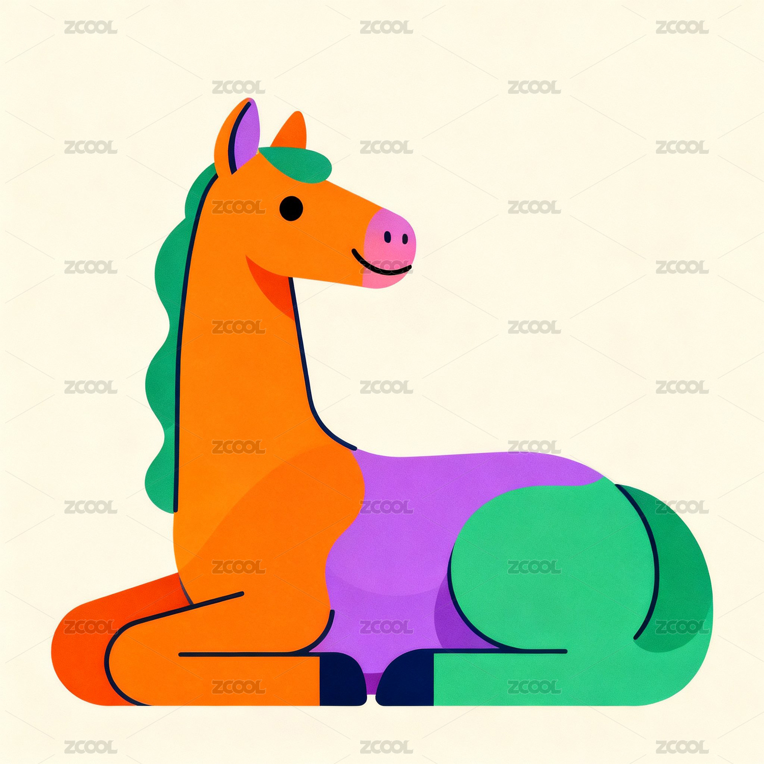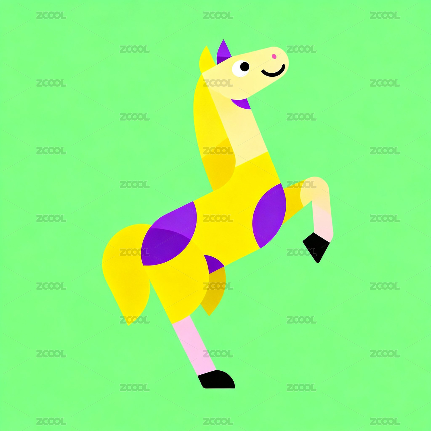 多巴胺活力色系弧形色块马插画