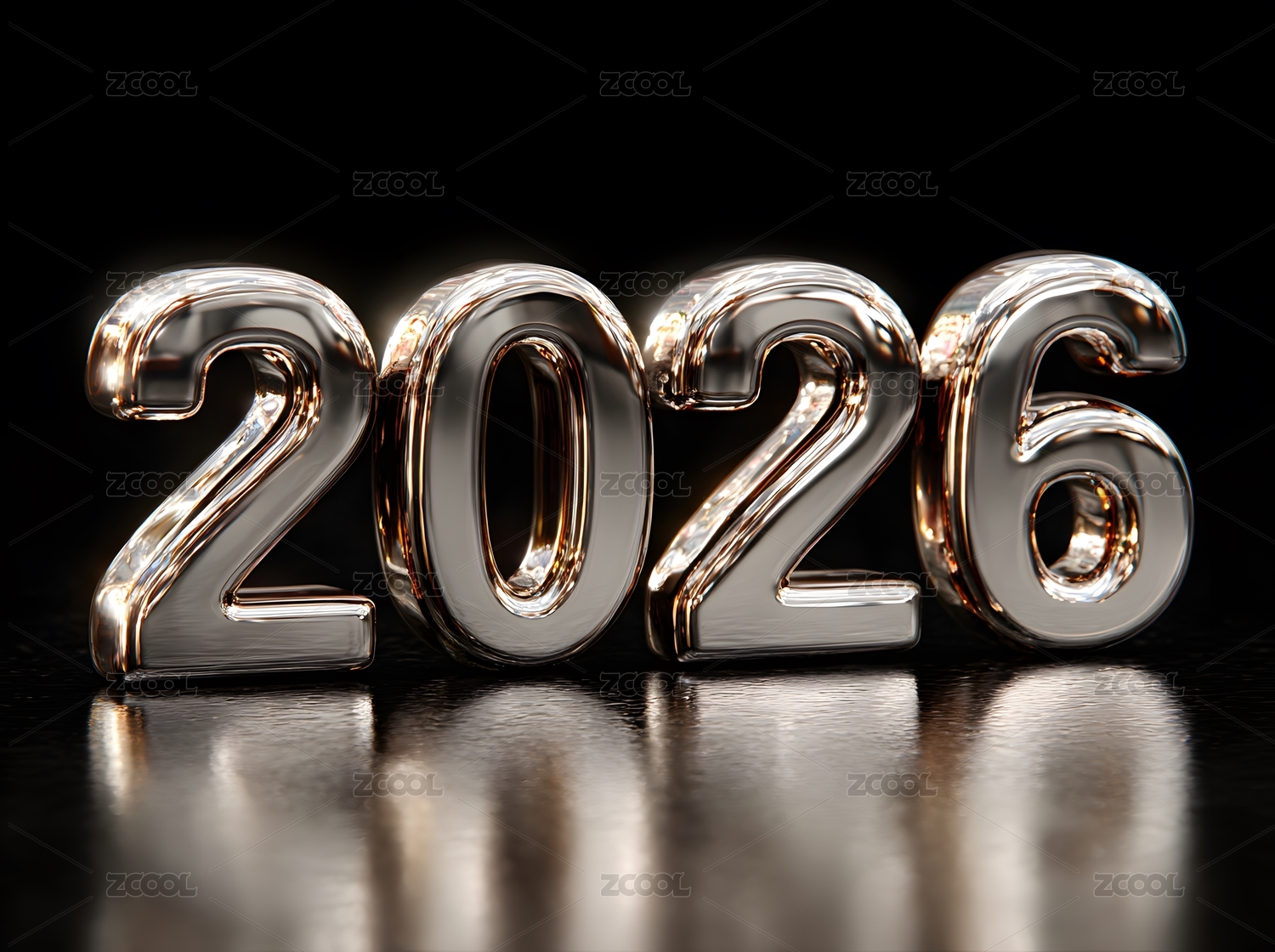 数字,金属,光泽,黑色,背景,反射,未来,年份,新年,金色