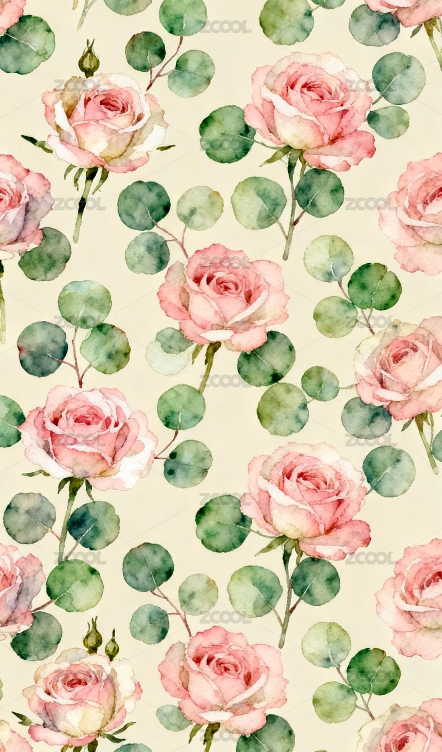 清新水彩花卉图案