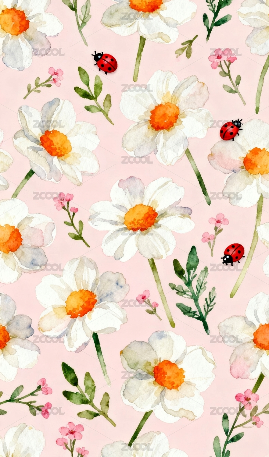 主视觉,商业,壁纸,雏菊,瓢虫,图案,背景,花卉,昆虫,粉色