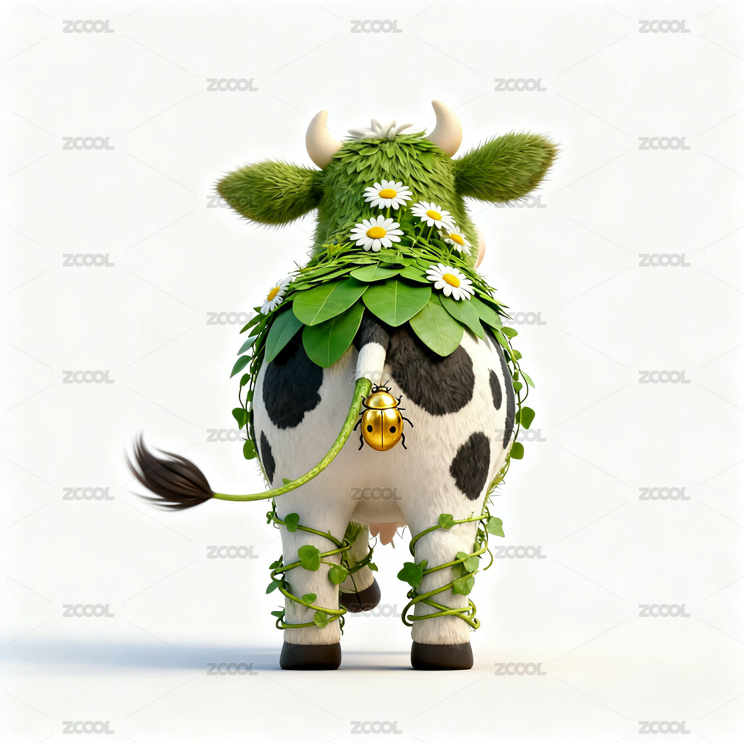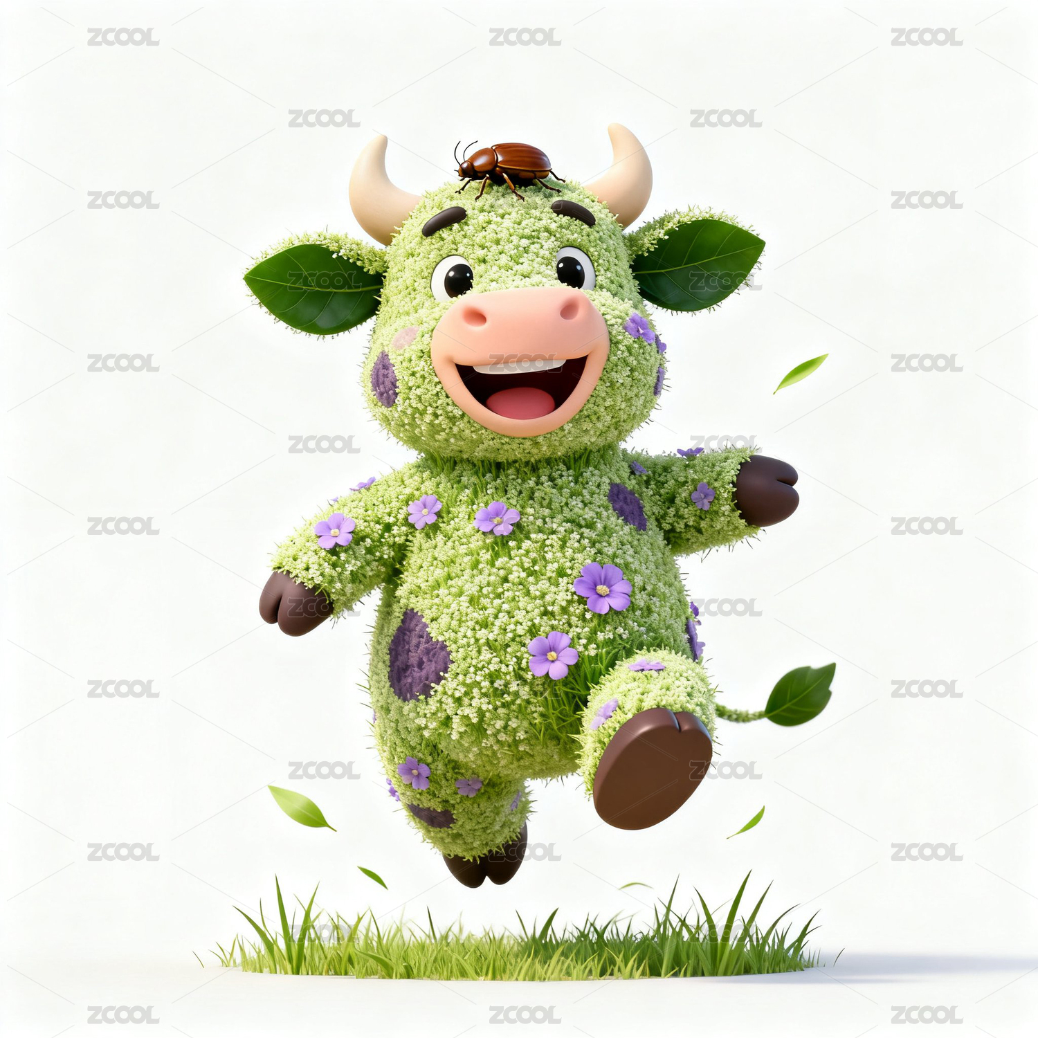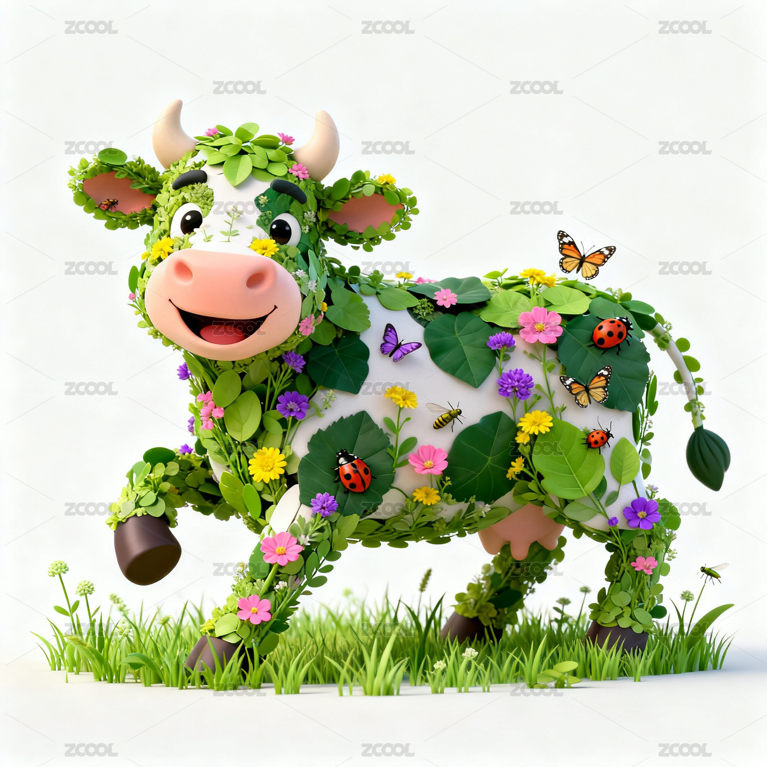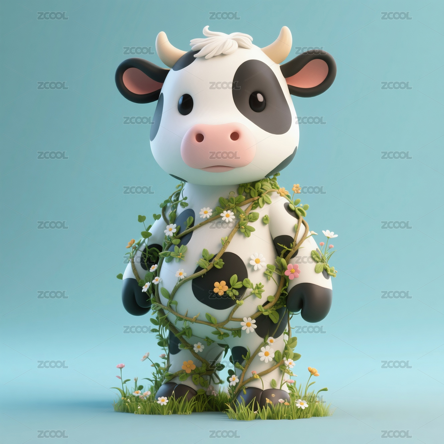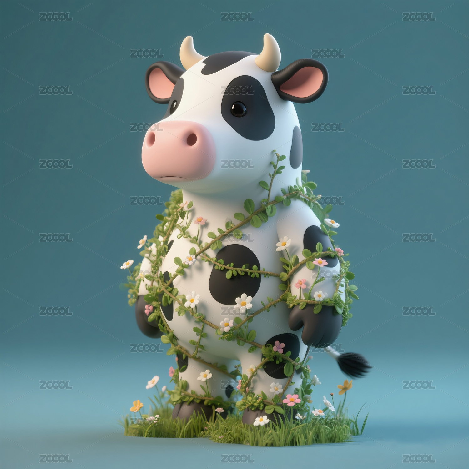 藤蔓缠绕的奶牛宝宝在草地上跳舞
