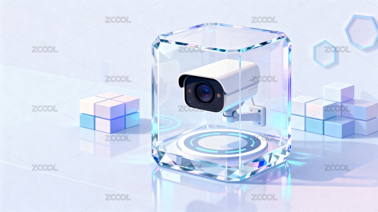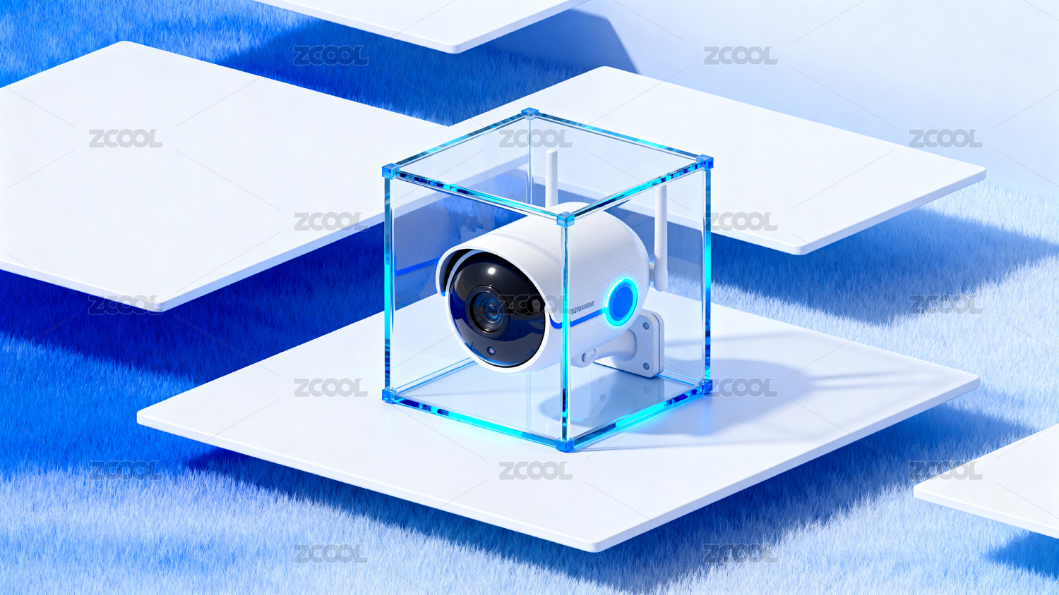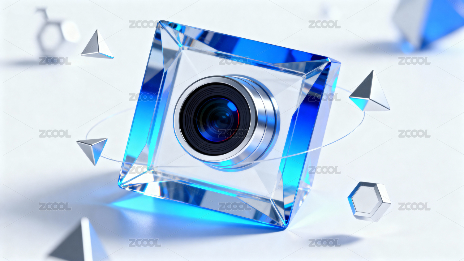 透明立方体中的摄像头科技感设计