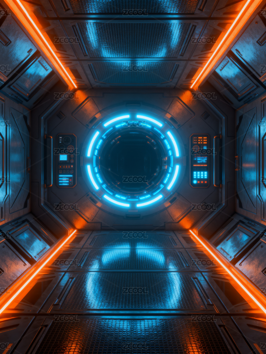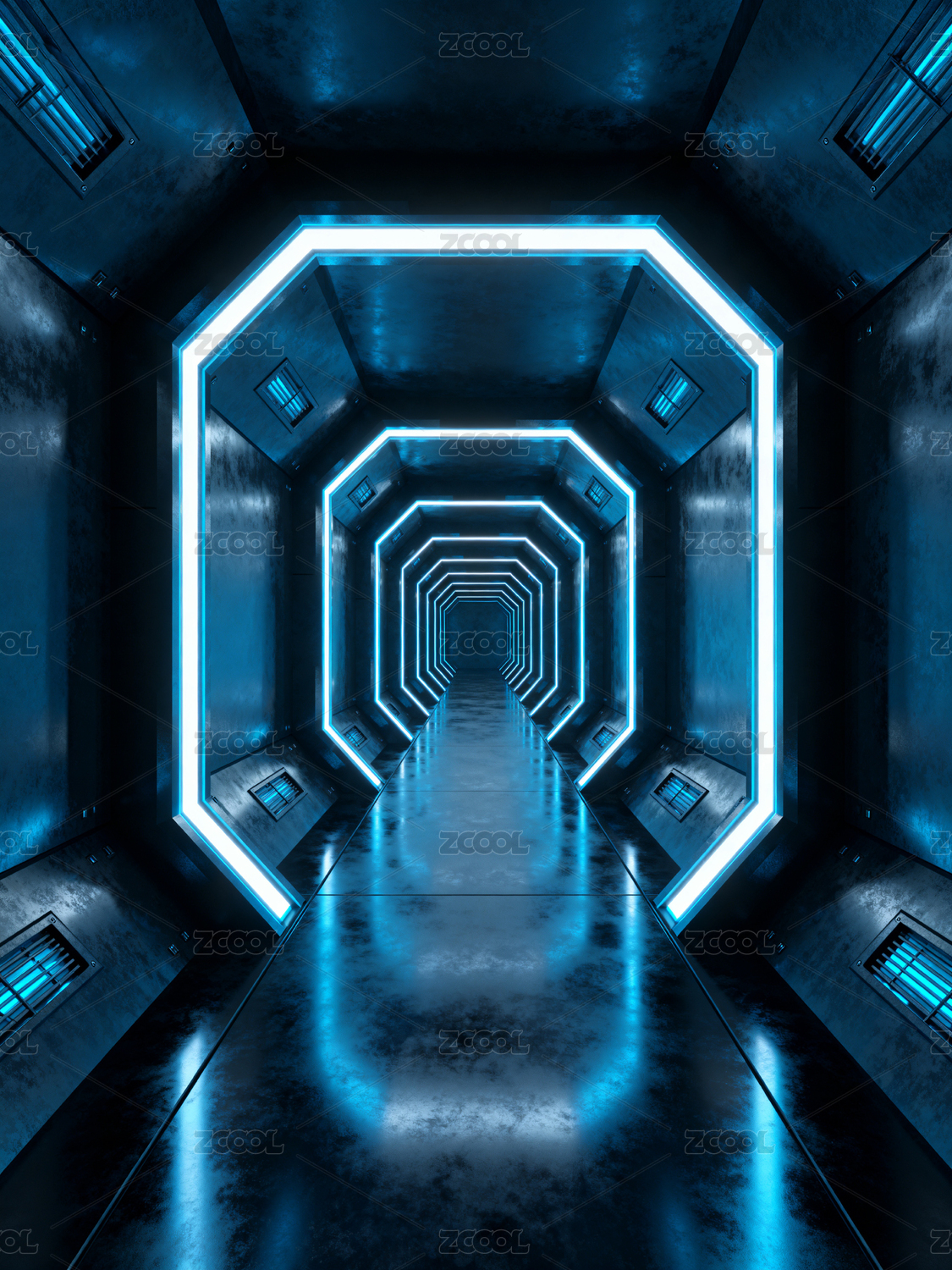 蓝色,现代,设计,未来,对称,光线,立体,黑色,灯光,隧道