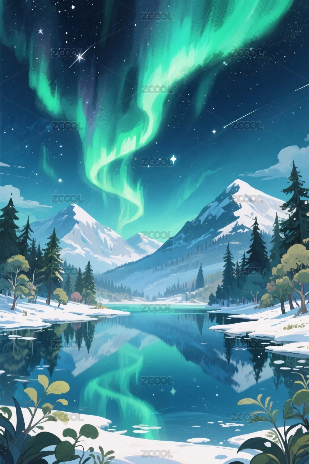 蓝色,绿色,灯光,自然,雪山,雪地,树木,冬季,寒冷,户外