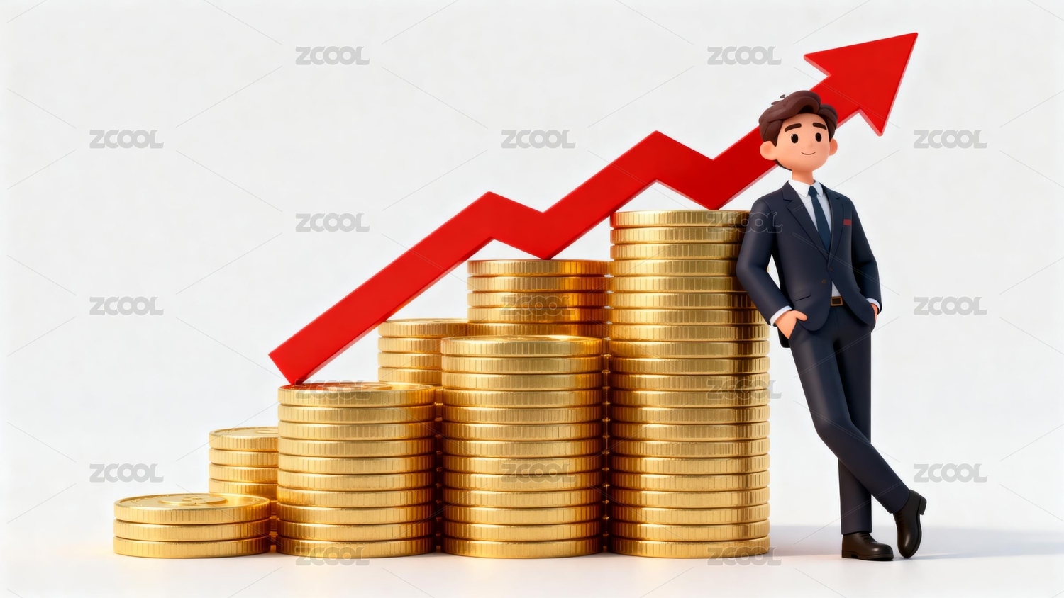 红色,白色,背景,符号,职业,西装,商务,男士,金币,堆叠
