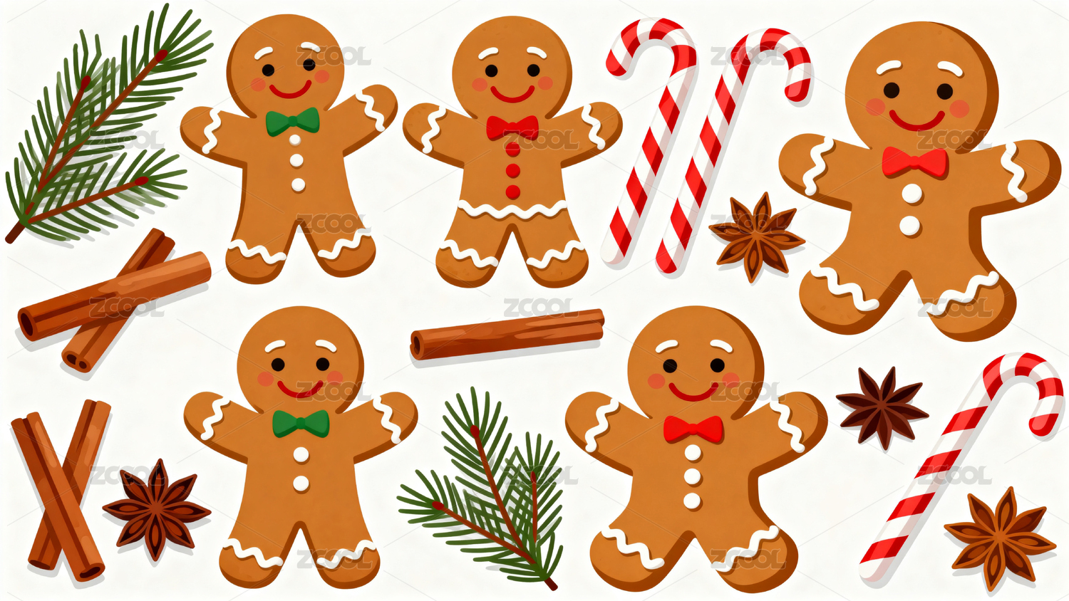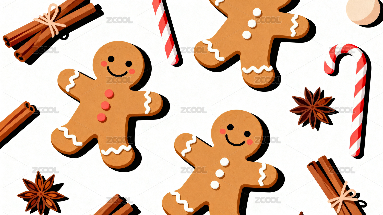 圣诞姜饼人与糖果装饰图案