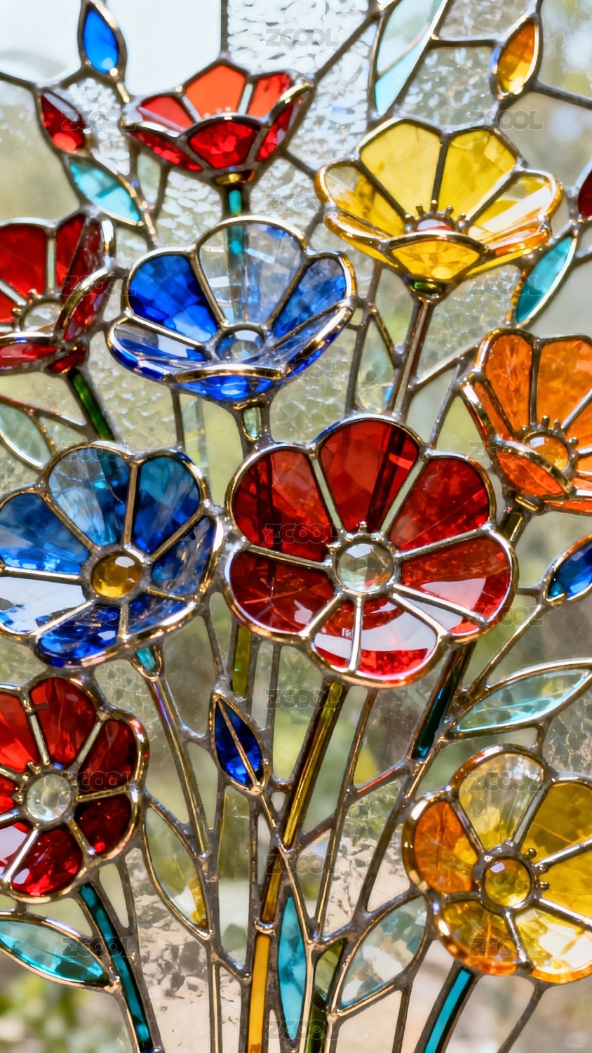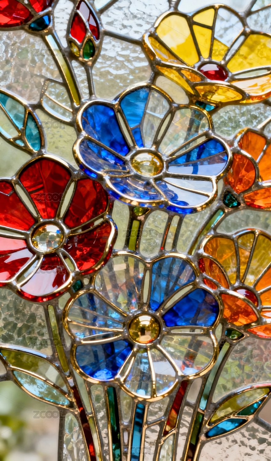 彩色玻璃花卉装饰场景