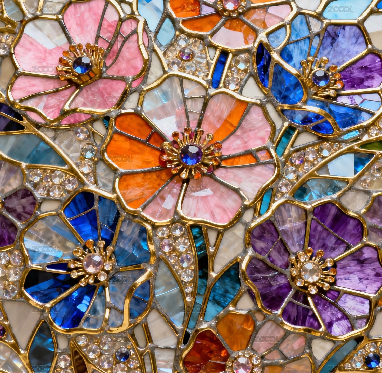 珠宝花饰彩色镶嵌装饰艺术场景