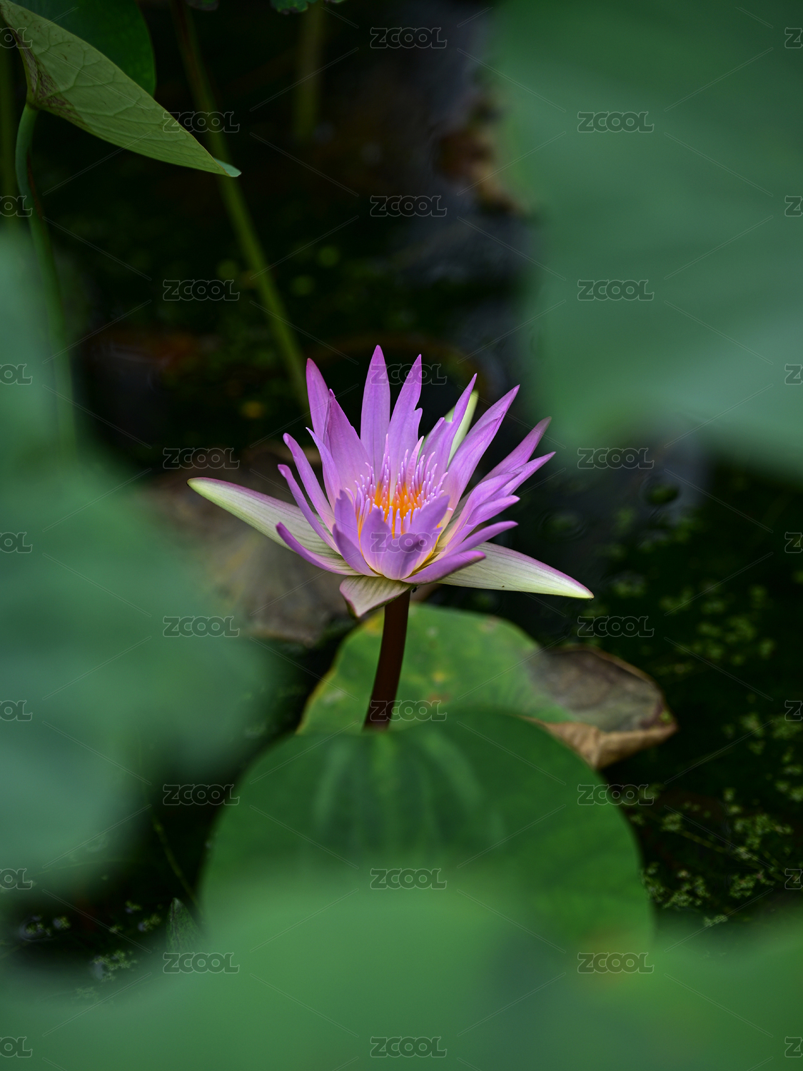 荷塘里盛开的紫色睡莲特写