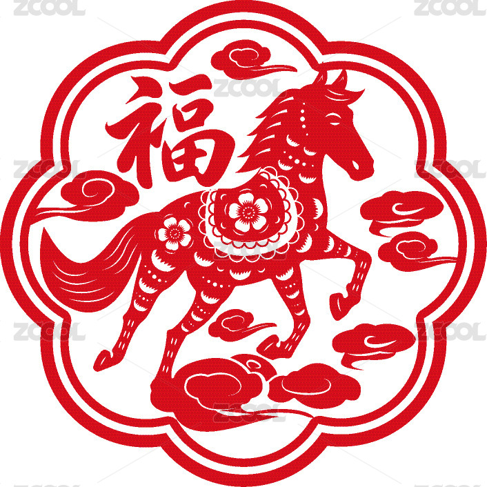 红色马年剪纸图案
