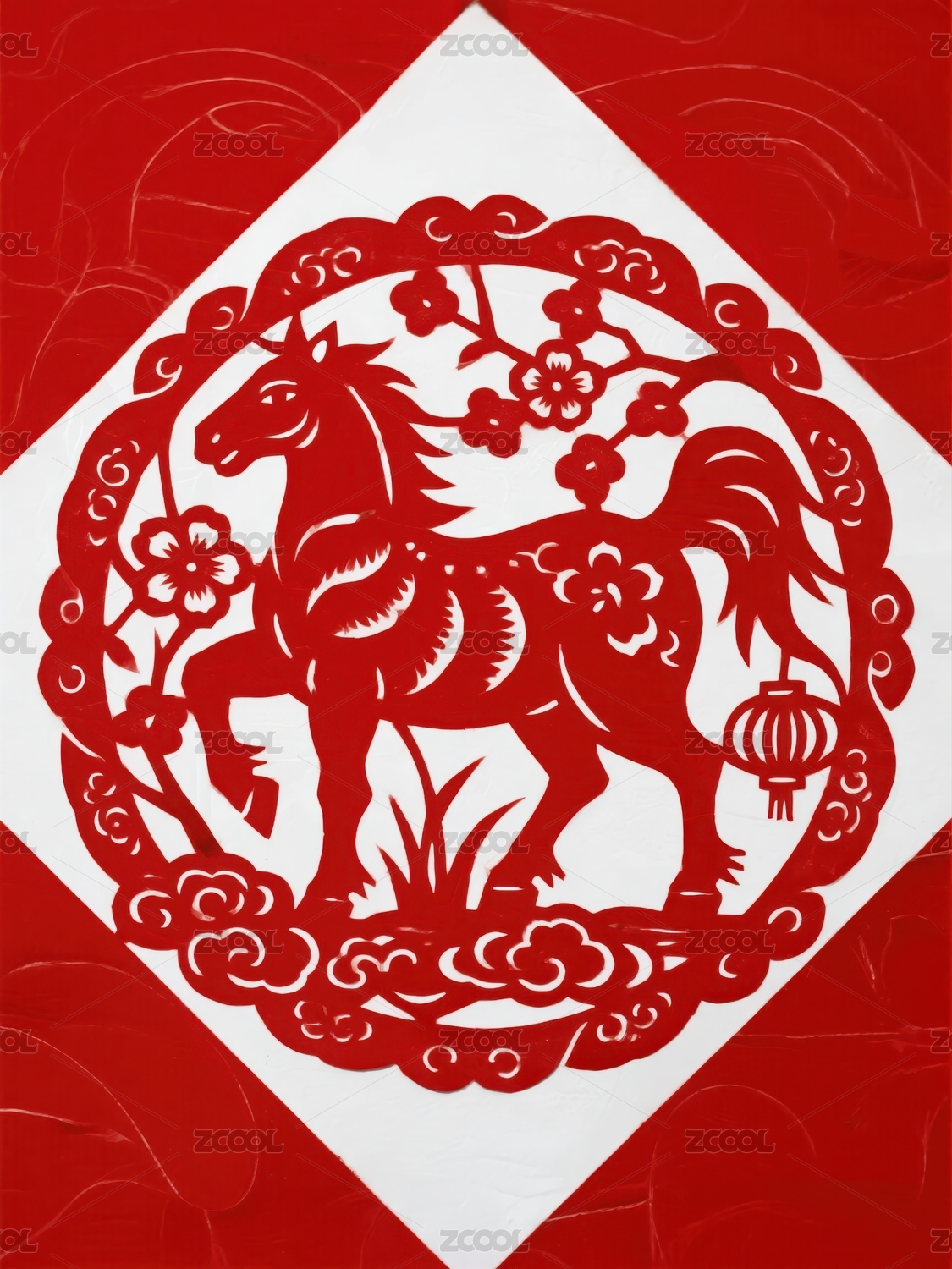 春节,马,剪纸,马年,传统文化,拜年,贺卡,美术工艺,窗花,祥云