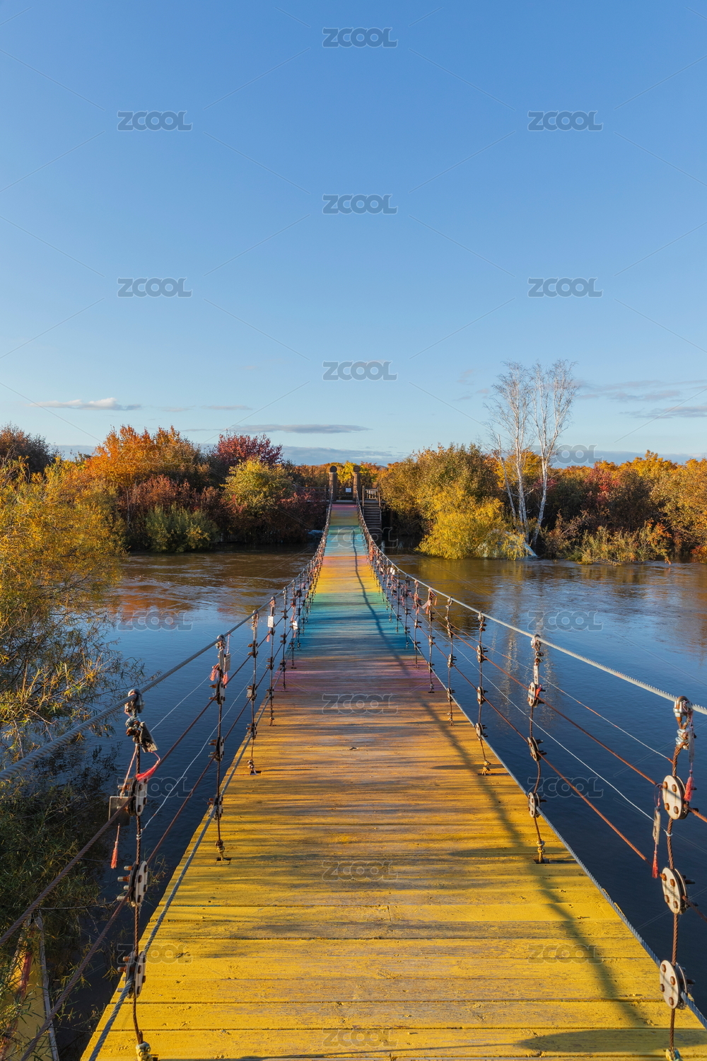 内蒙古呼伦贝尔额尔古纳湿地彩虹桥河畔秋色
